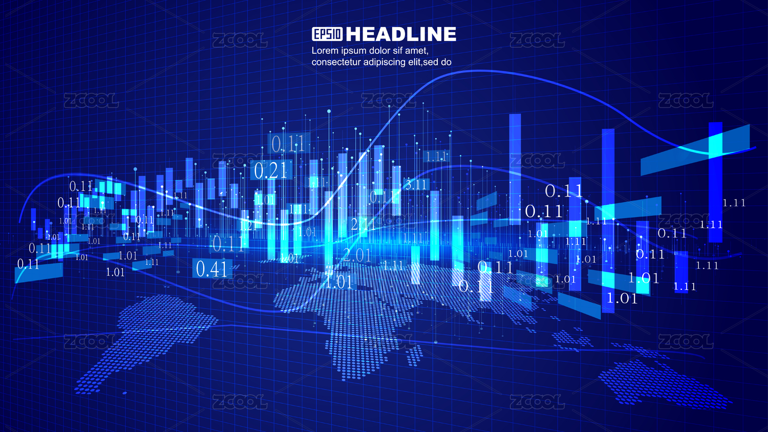 数码地球表面上的金融曲线图表矢量背景。