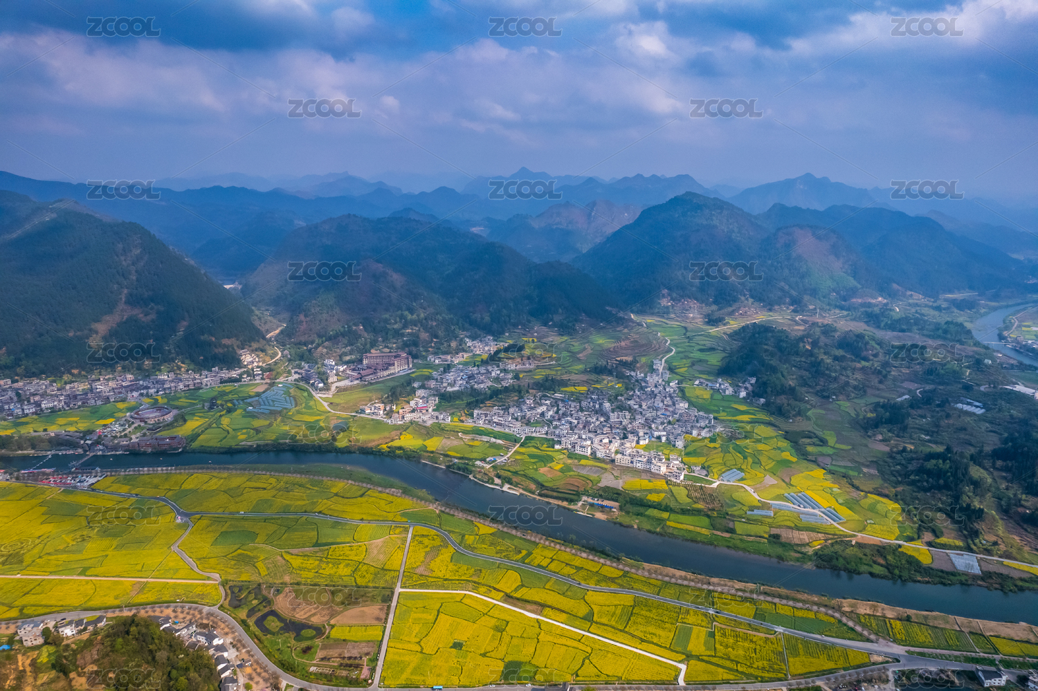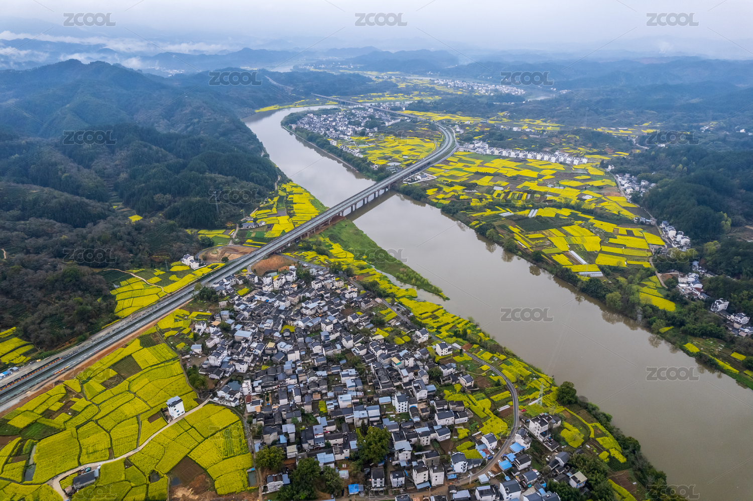 杭州富阳富春江包家淇春天乡村田园油菜花