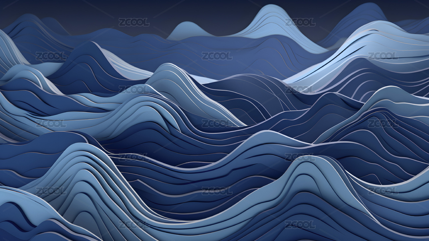 层叠蓝绿波浪的抽象艺术景观