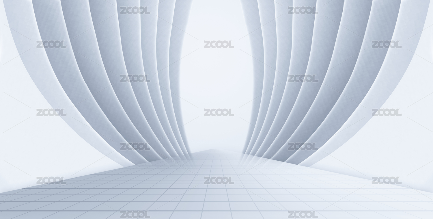 白色弯曲拱形建筑未来延伸隧道空间背景