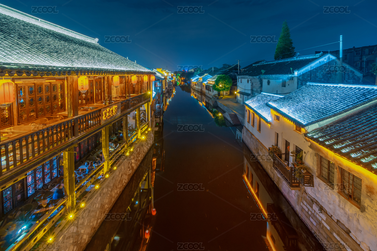 江南水乡湖州南浔古镇百间楼民居群夜景
