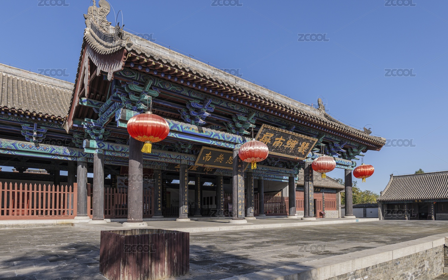 中国山西大同云冈石窟景区入口广场古建筑风光