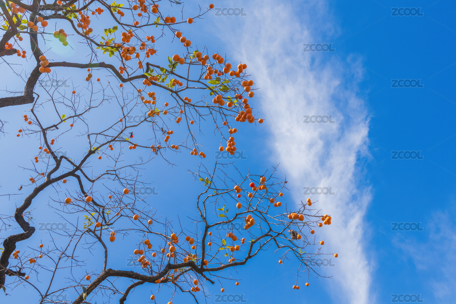 自然,风景,天空,背景,秋天,柿子,留白,霜降,丰收,果实
