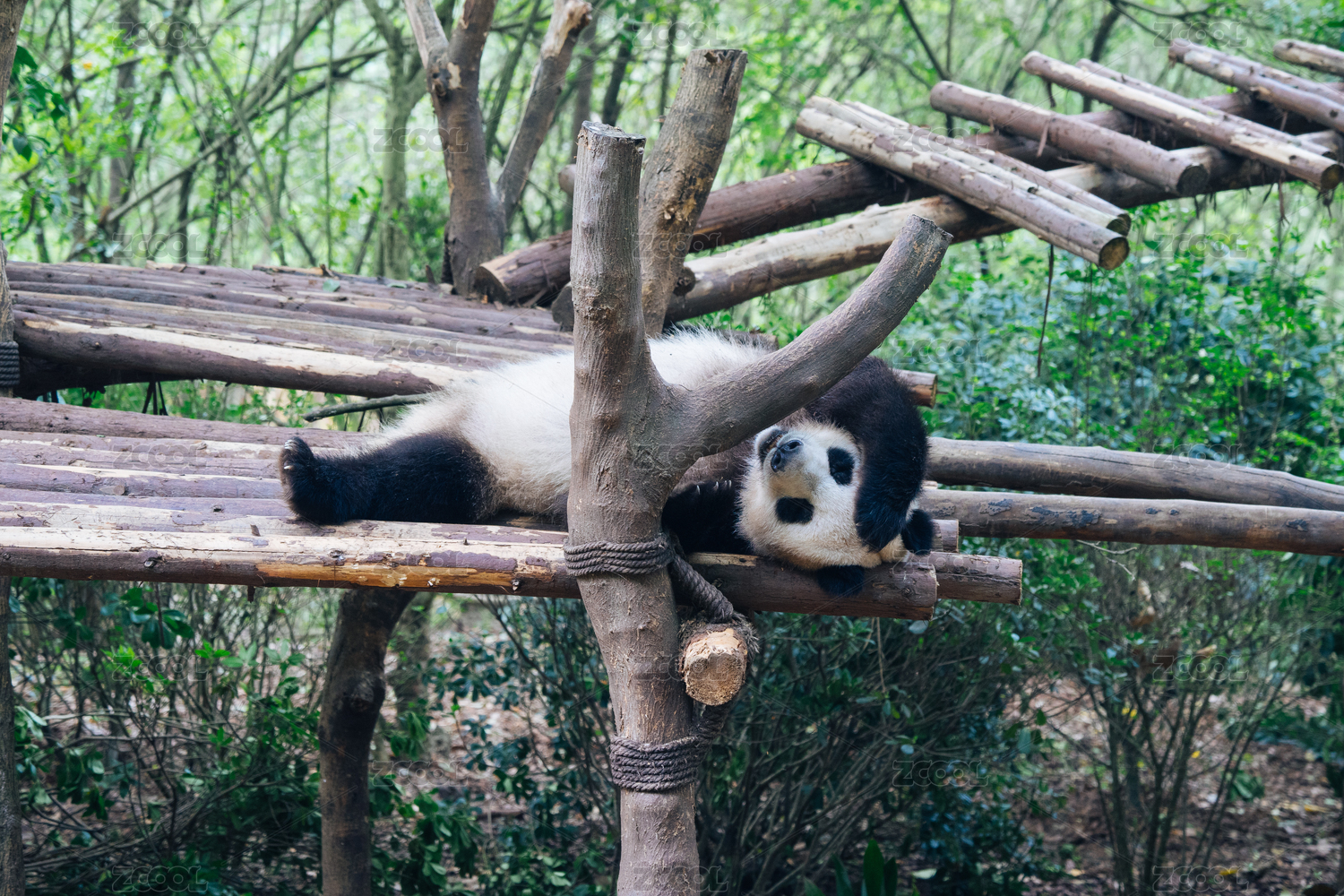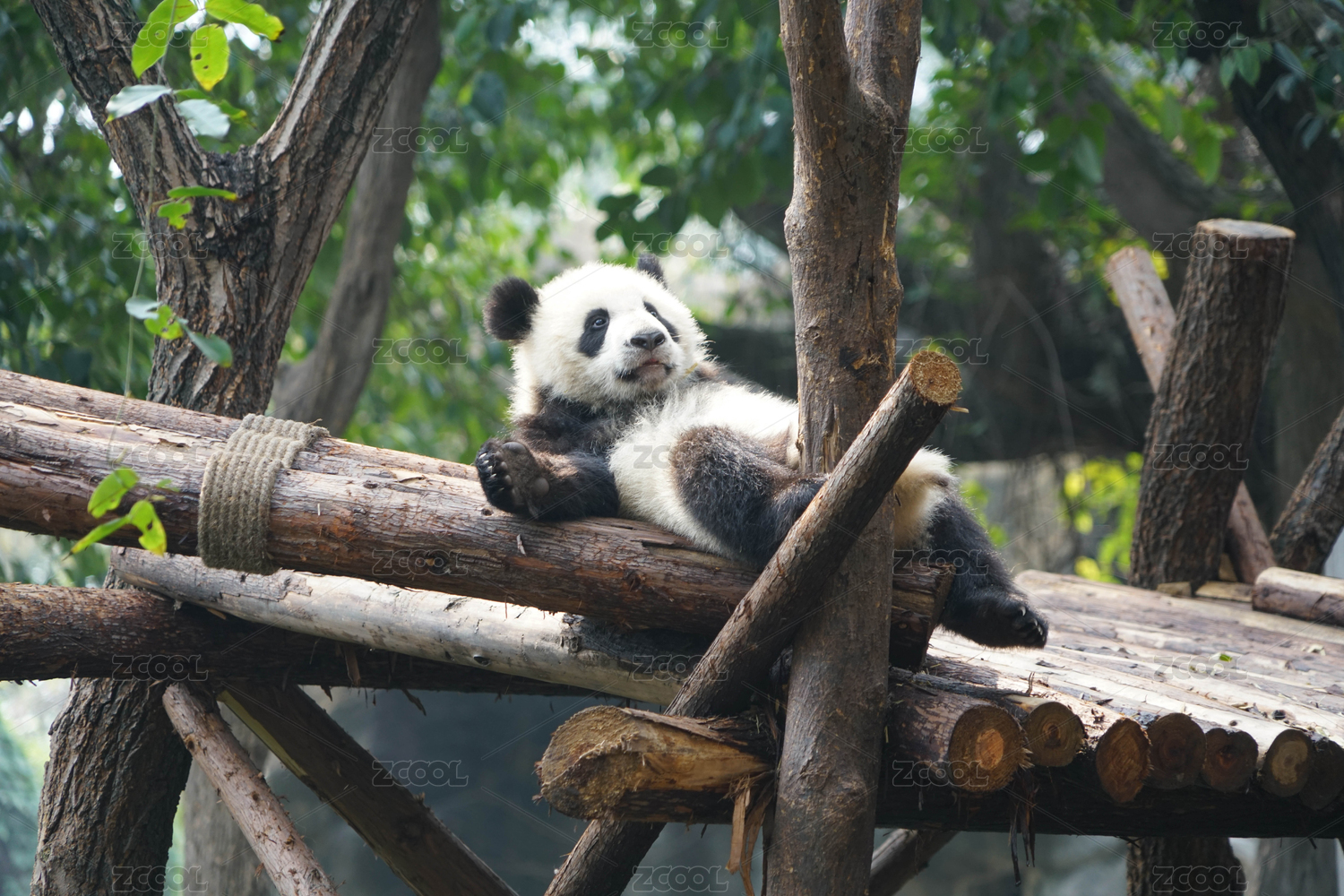 躺在大树上休息的可爱大熊猫特写