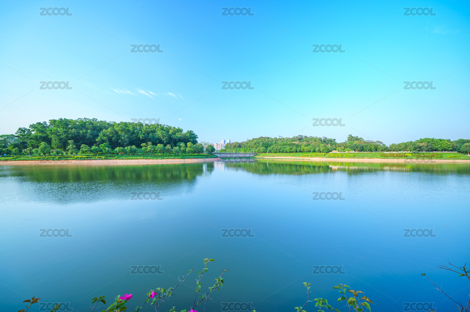 中国广东东莞中央群岛公园映衬在蓝天白云下