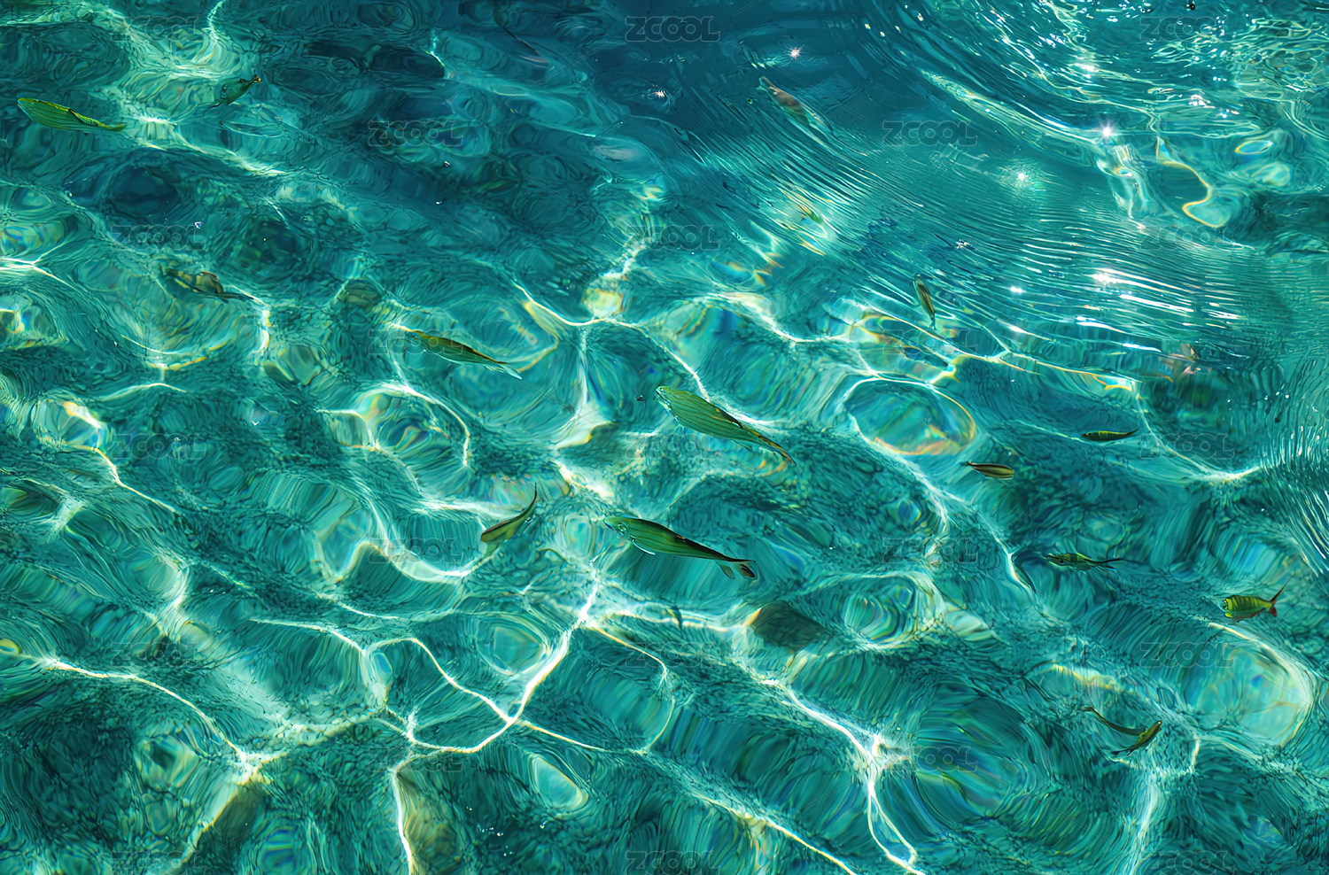 夏天波光粼粼的游泳池清澈闪亮的蓝色波纹