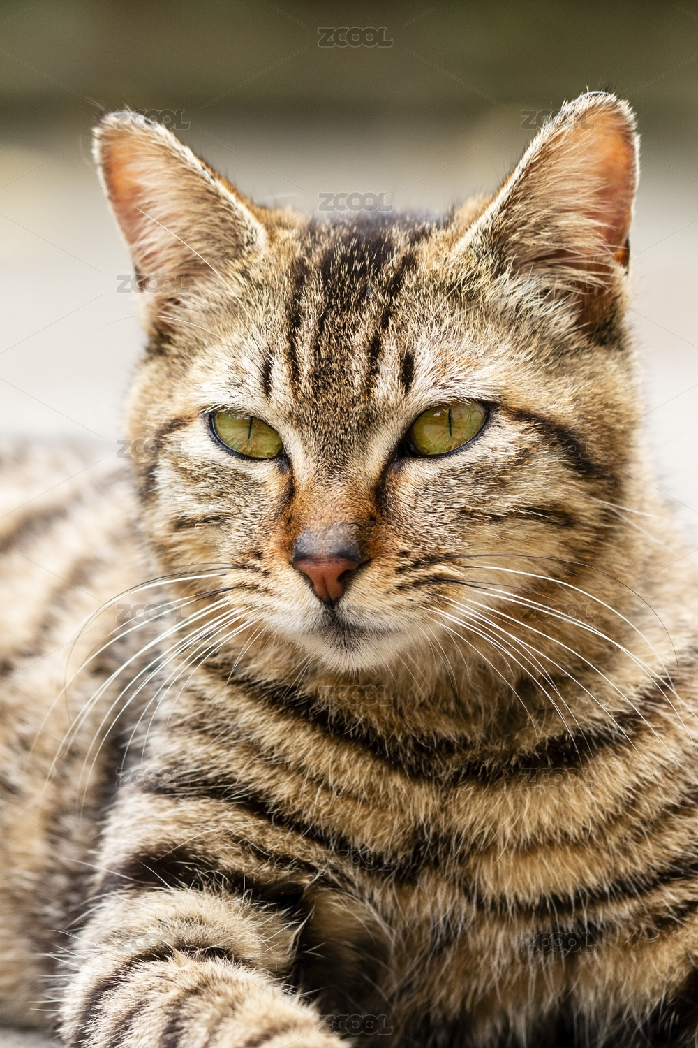 一只慵懒的狸花猫面部特写