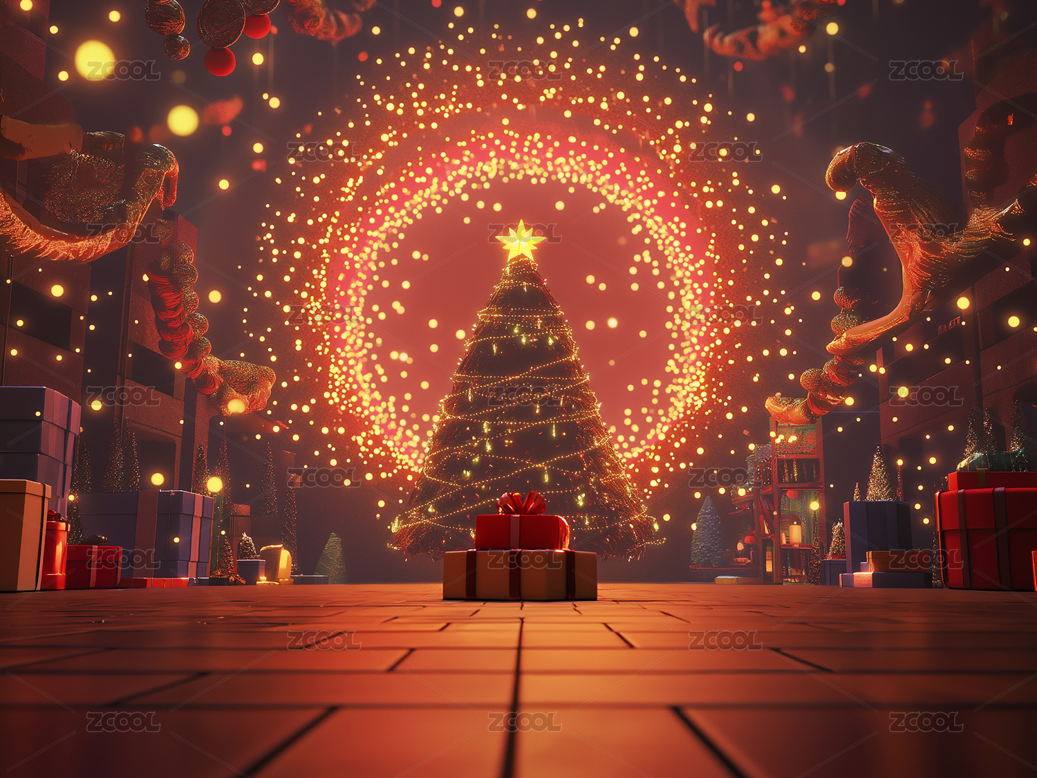圣诞,圣诞节,节日,圣诞树,装饰,灯光,圣诞老人,礼物,房间,插画