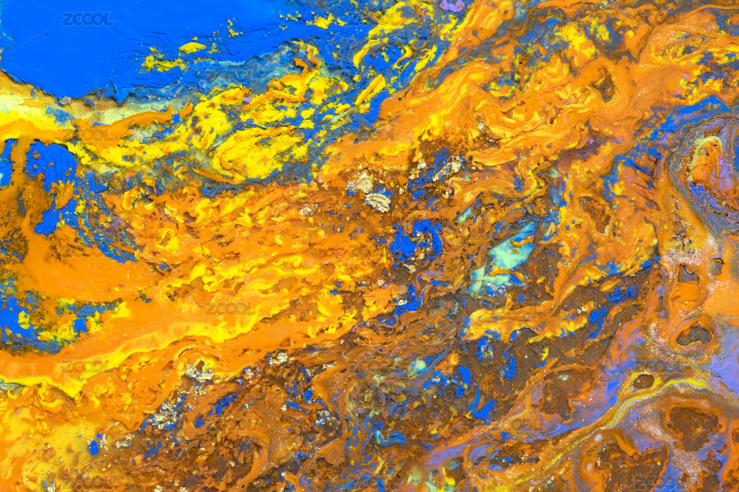 各种颜料融合流淌