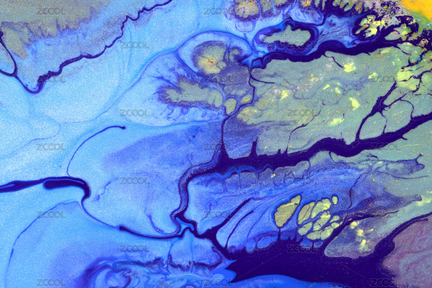 蓝色颜料融合成湖泊山川