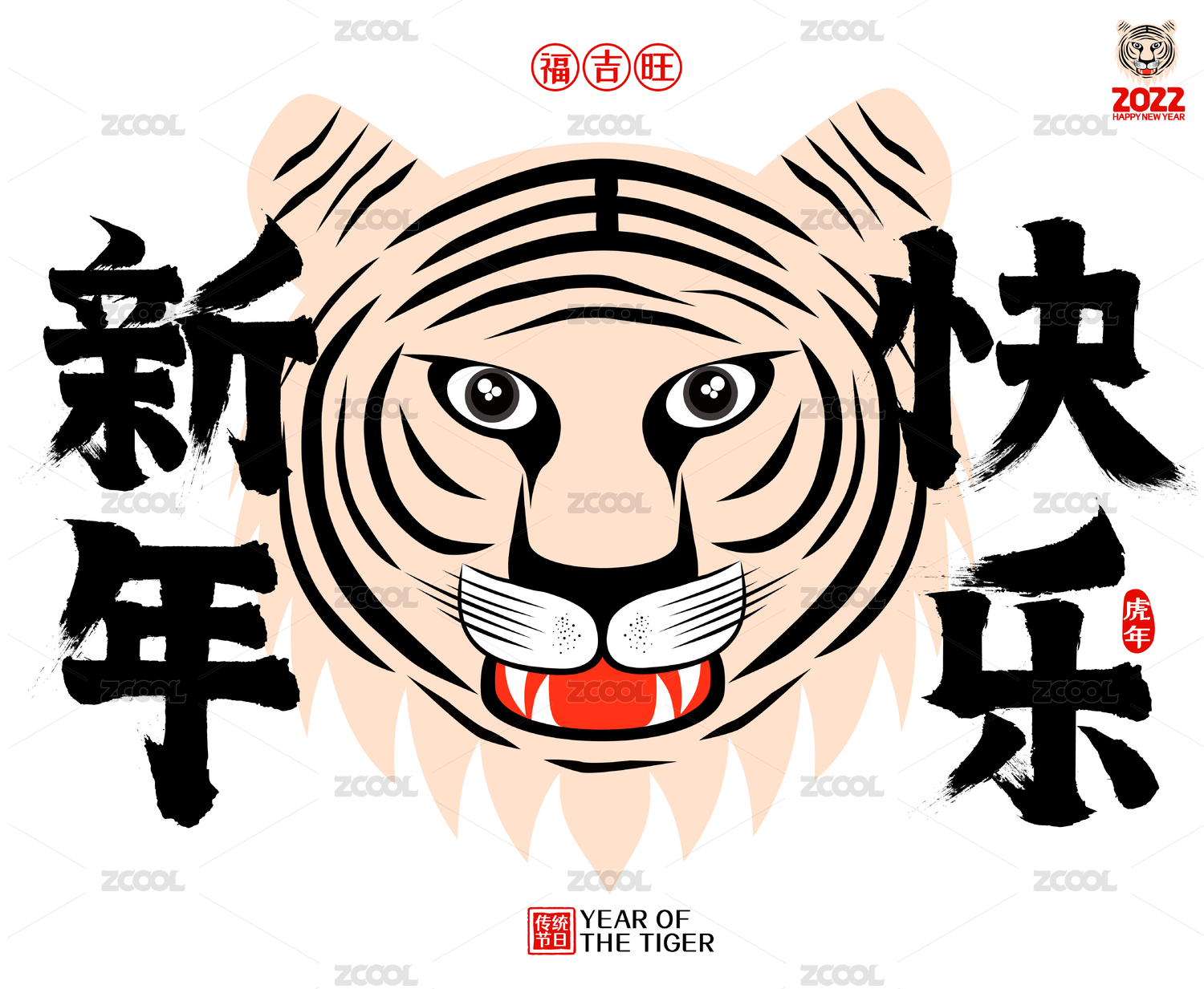 瑞虎迎祥2022虎年简约虎头矢量书法字