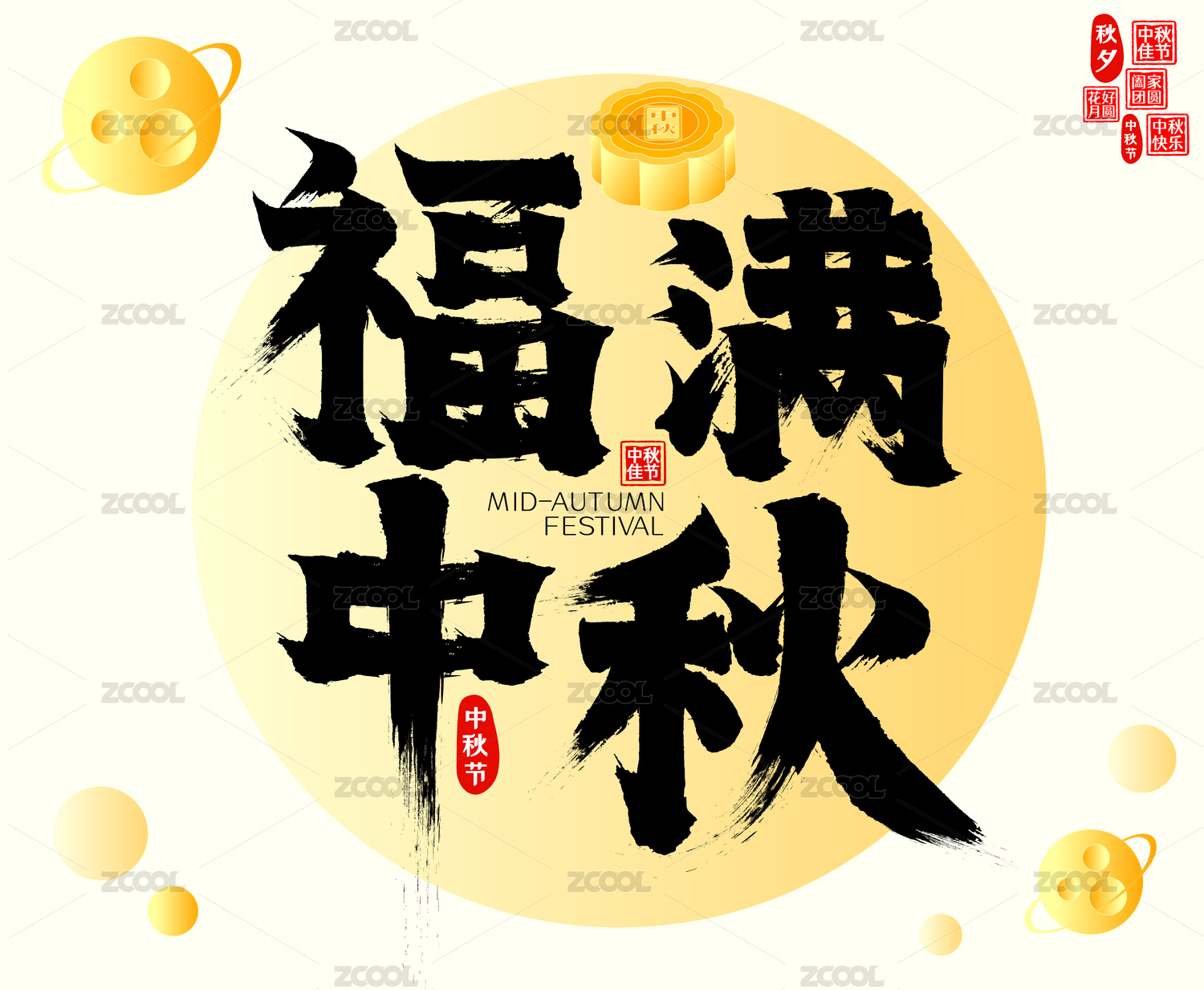 迎中秋庆国庆星球红绸鸽子矢量书法字