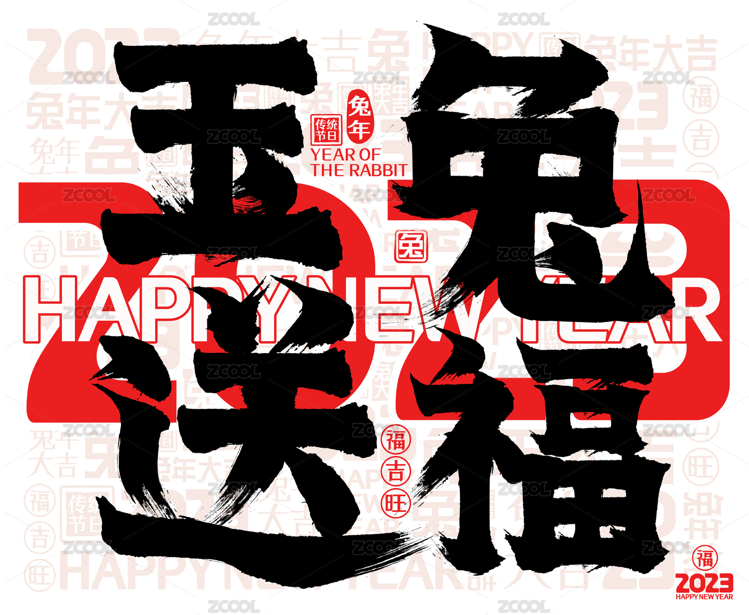 2023玉兔迎祥喜庆中国红兔年春节毛笔字