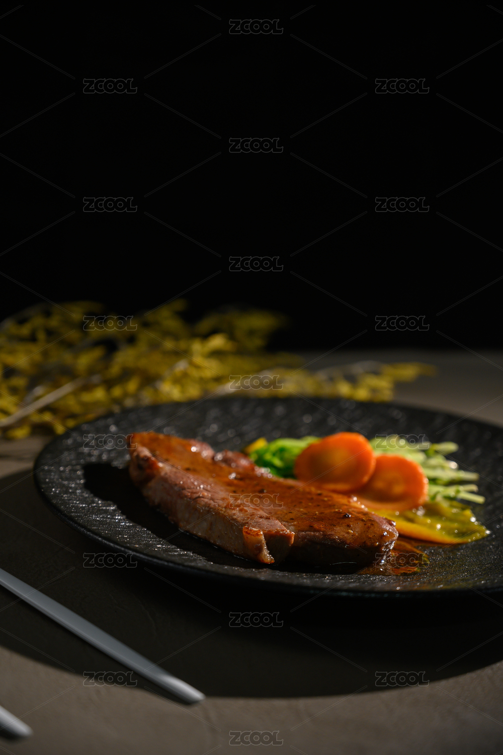桌面上的盘子里的美味可口的煎牛扒