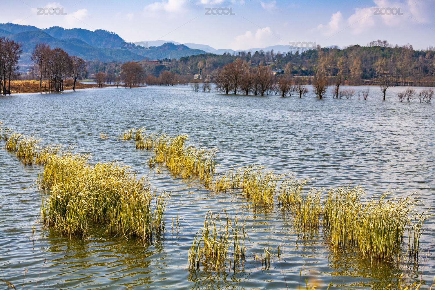 中国,云南,大理,上关镇,罗时江生态湿地,风光,湿地,天空,秋天,倒影