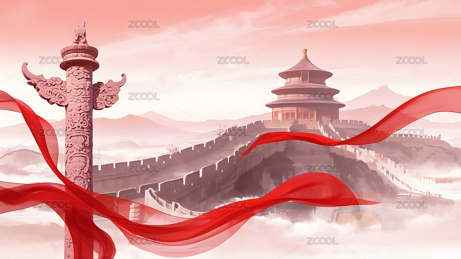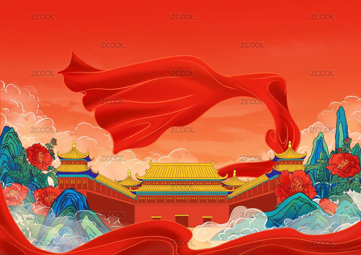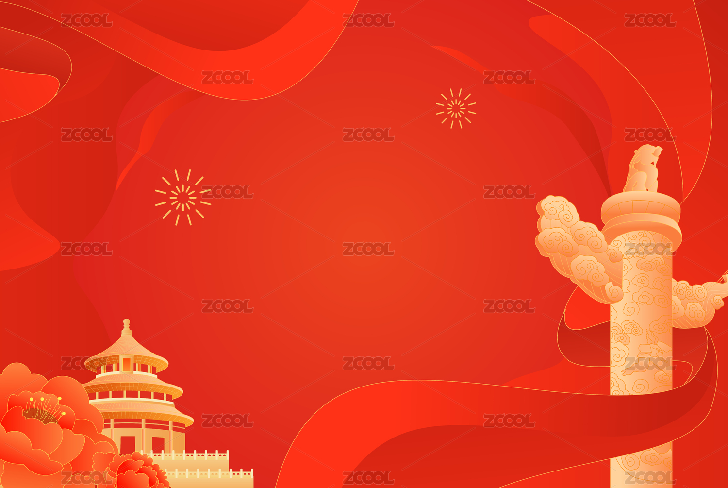西安传统节日国庆节周年庆华表红色喜庆党建