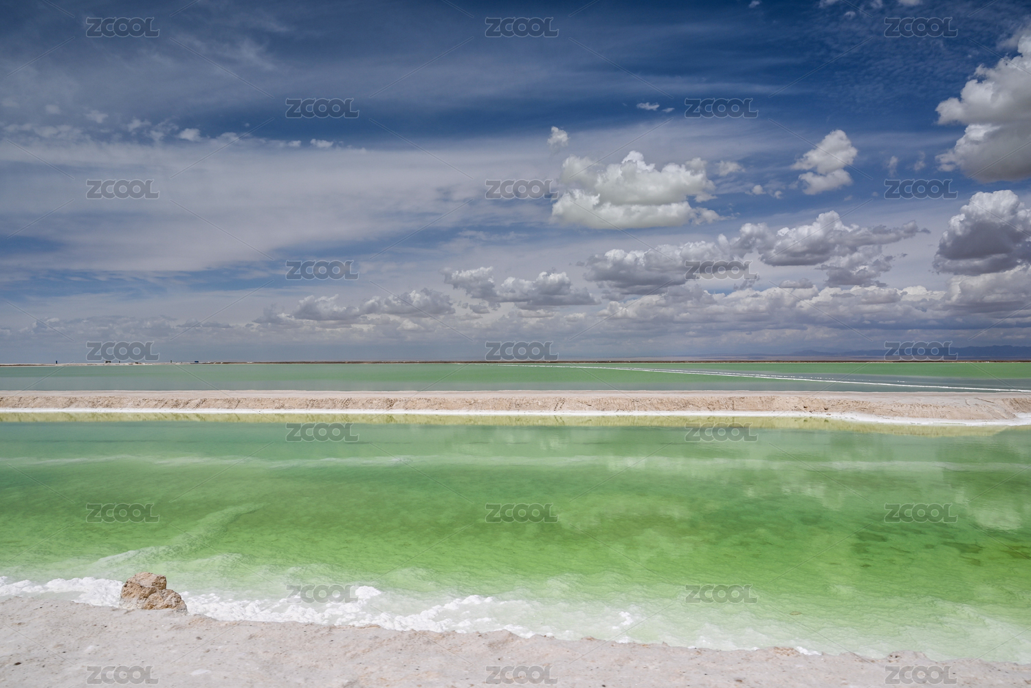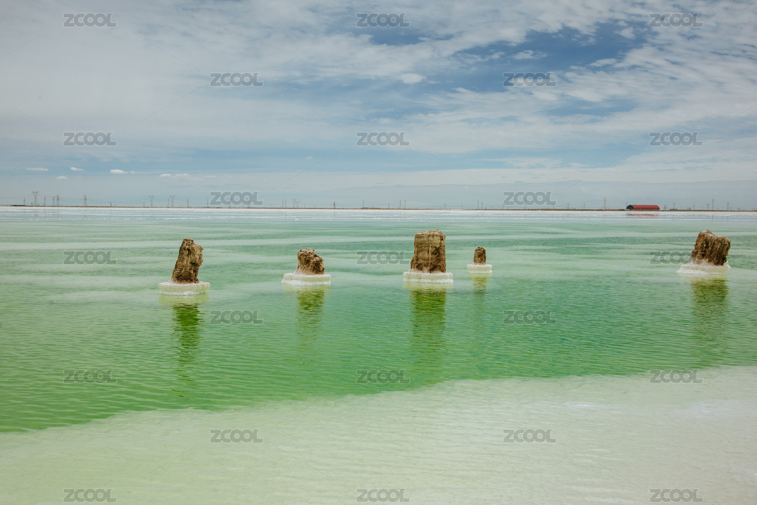 晴天 绿色广阔的中国青海察尔汗盐湖