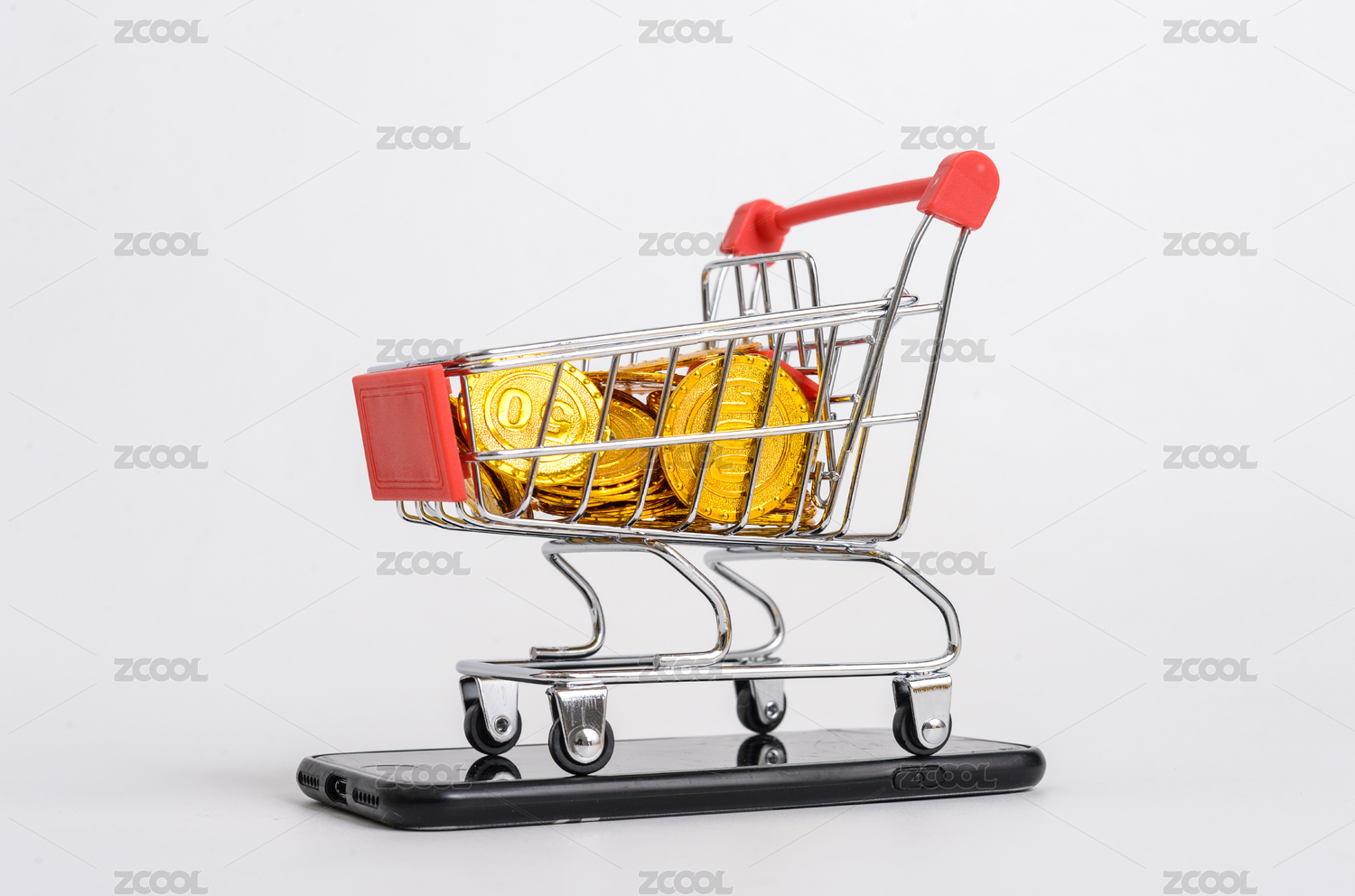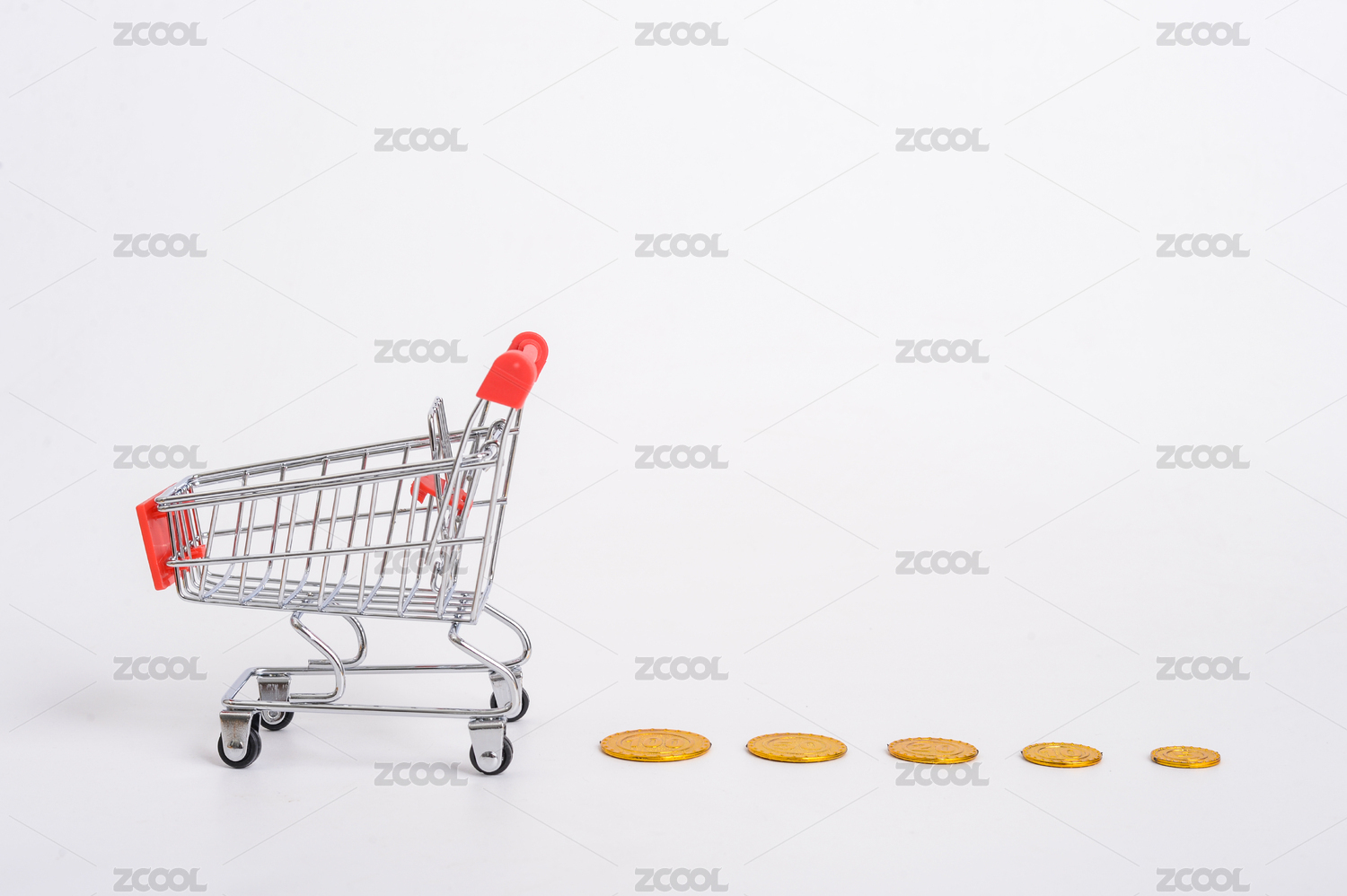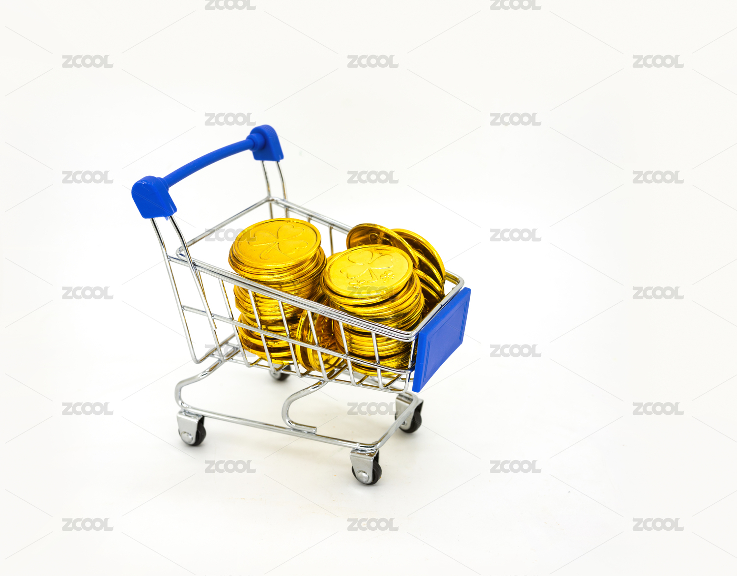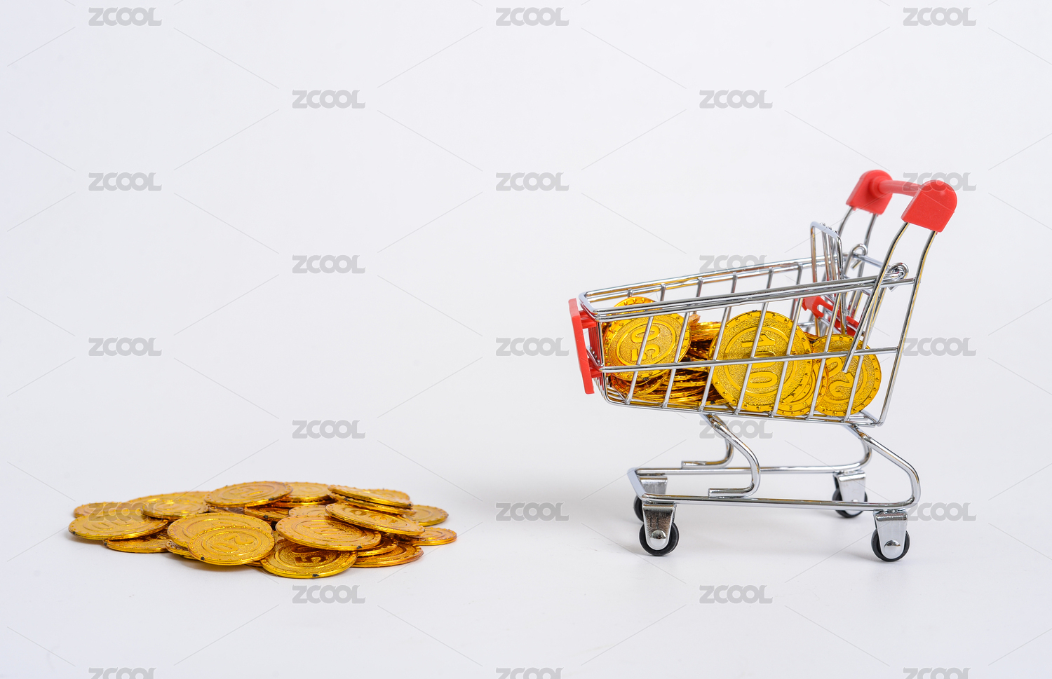 棚拍金融类购物车和金币硬币