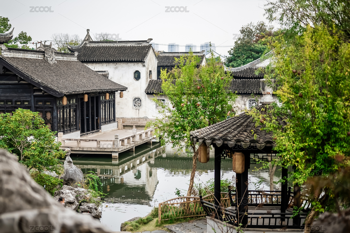 中国江苏省无锡市荡口镇水街民居园林建筑