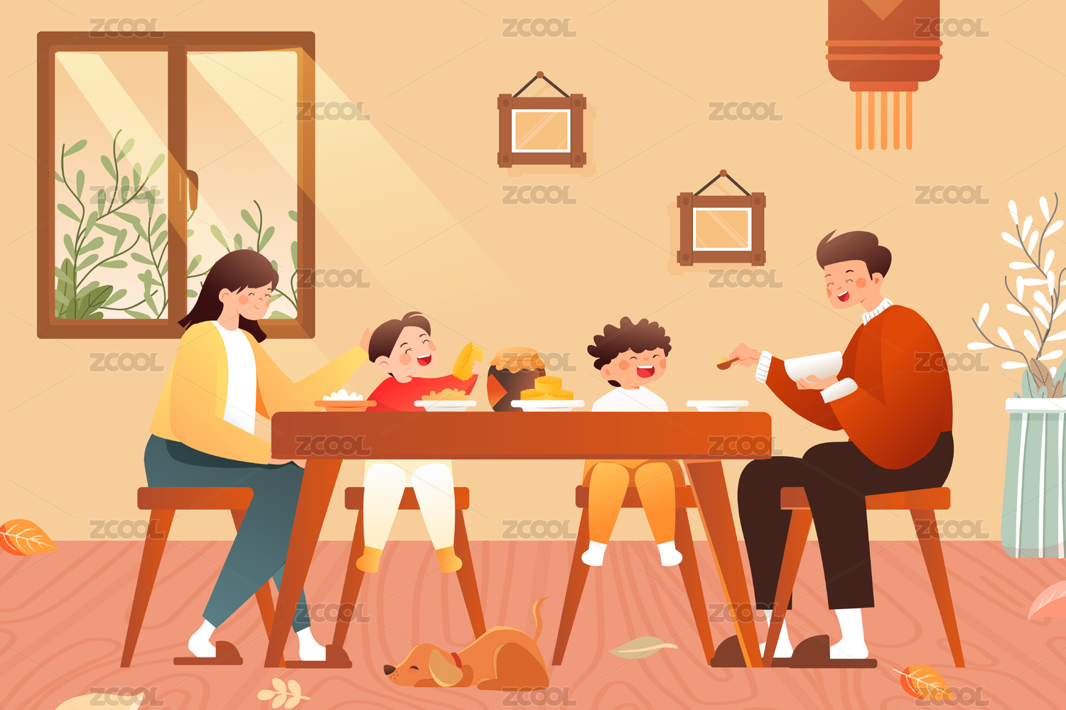 家人吃饭矢量插画