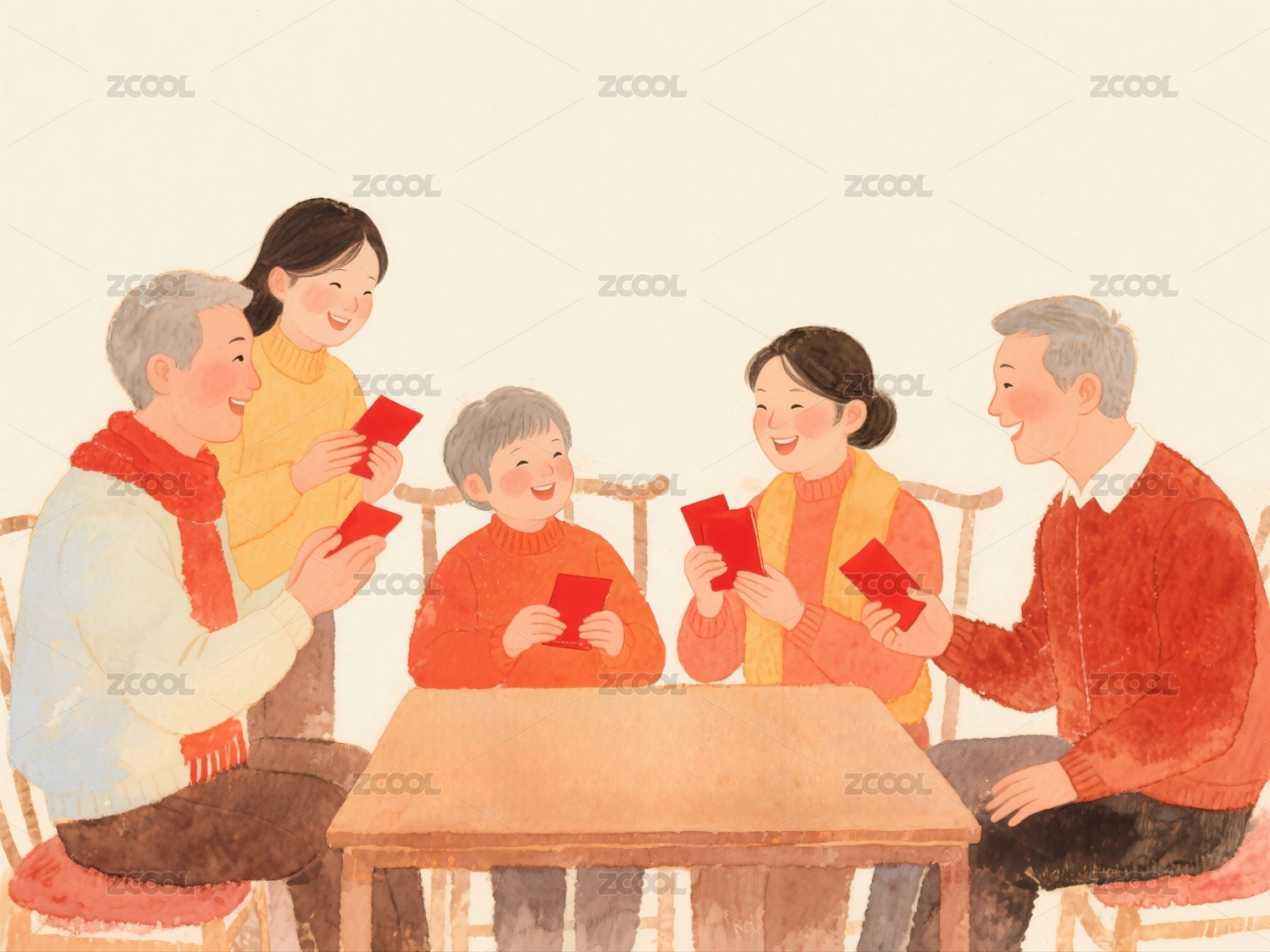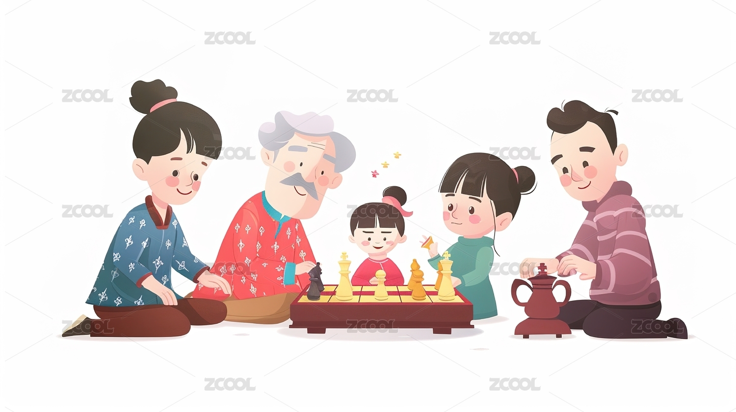 春节过年室内家人团圆全家福一家人插画