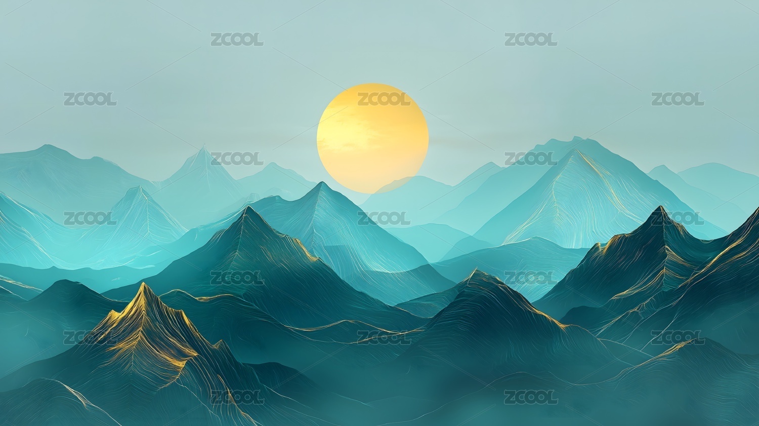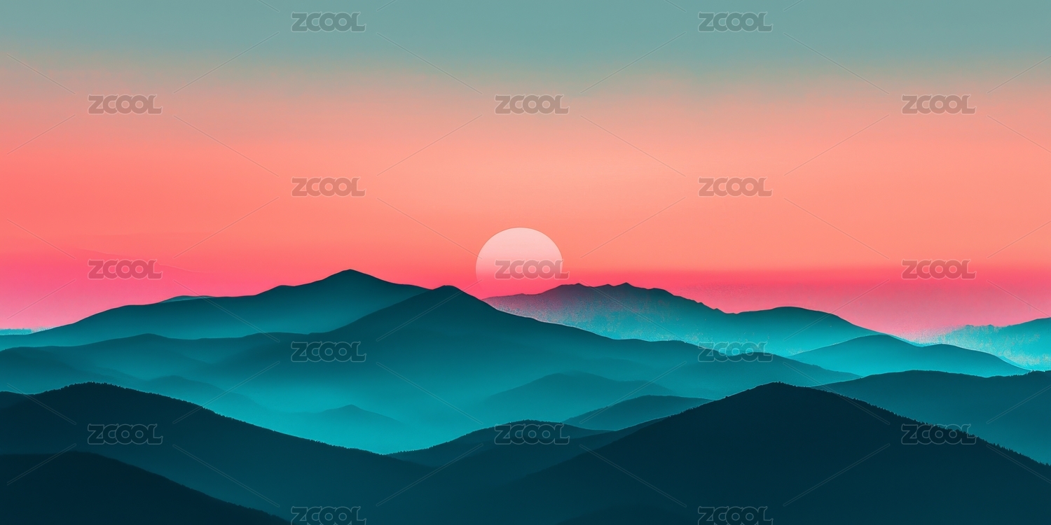 层峦叠嶂夕阳西下,飞鸟归巢意境深远