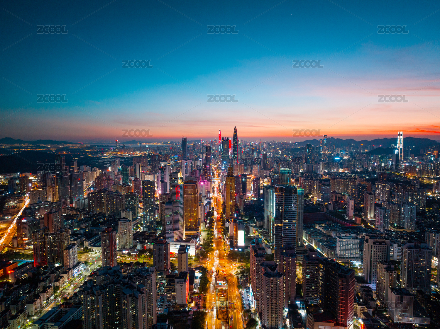 夕阳下的中国广东省深圳市城市建筑