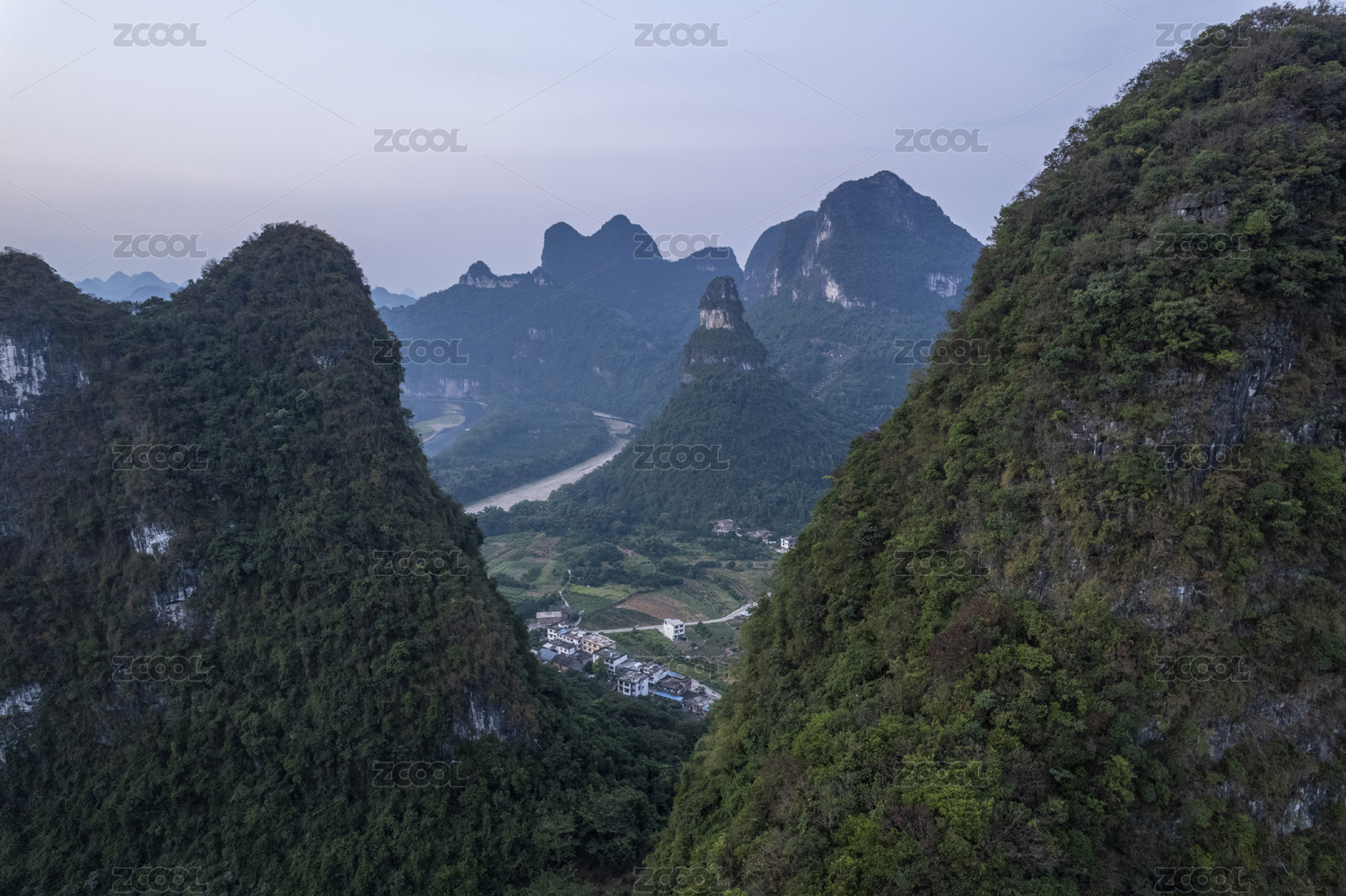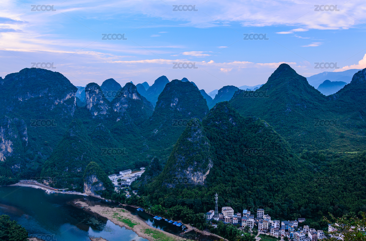 桂林兴坪古镇老寨山望漓江山水自然风光