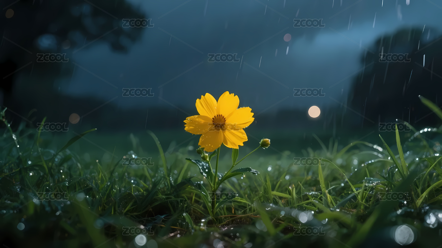 雨景草地黄色花