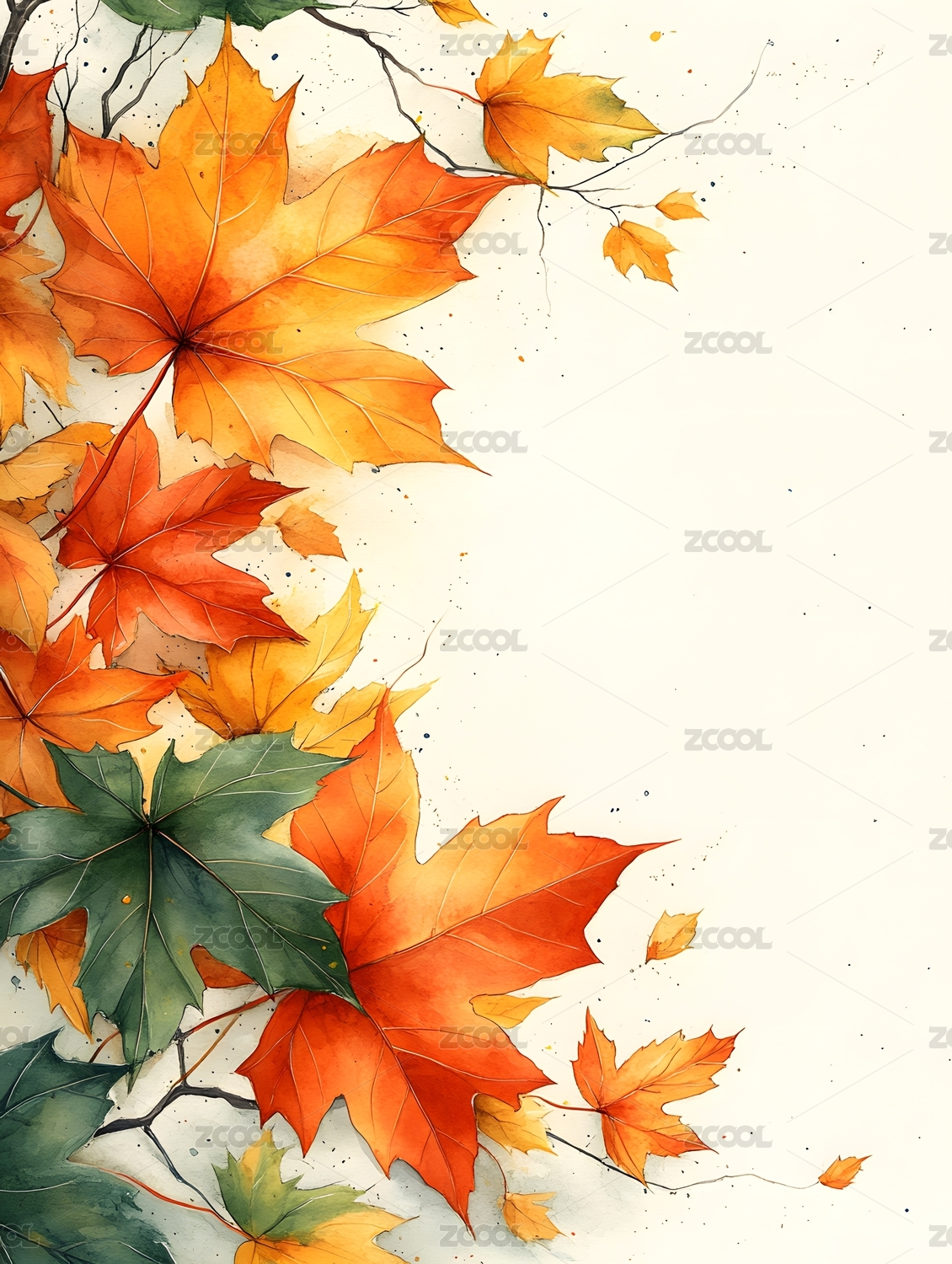 数码水彩彩色枫叶印花图案抽象图形海报背景