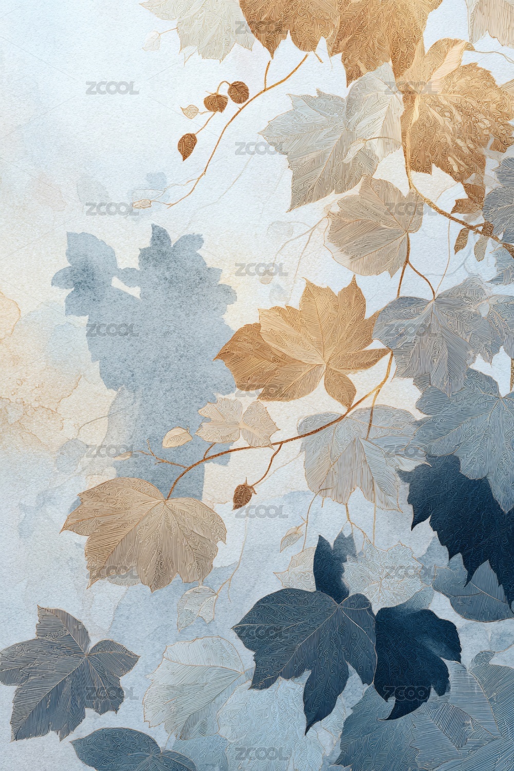 淡雅枝叶插画背景图