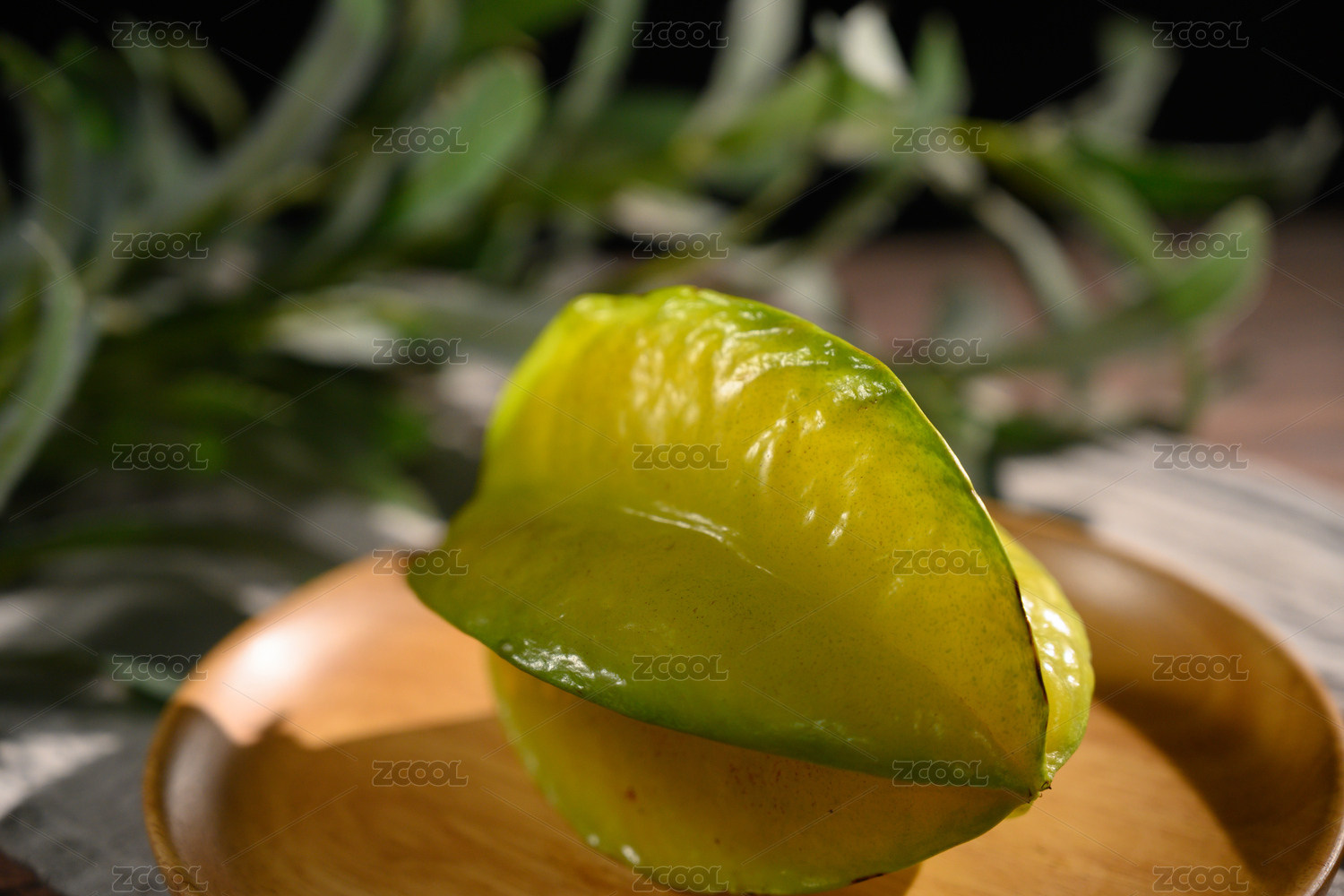 木底上放着一盘杨桃