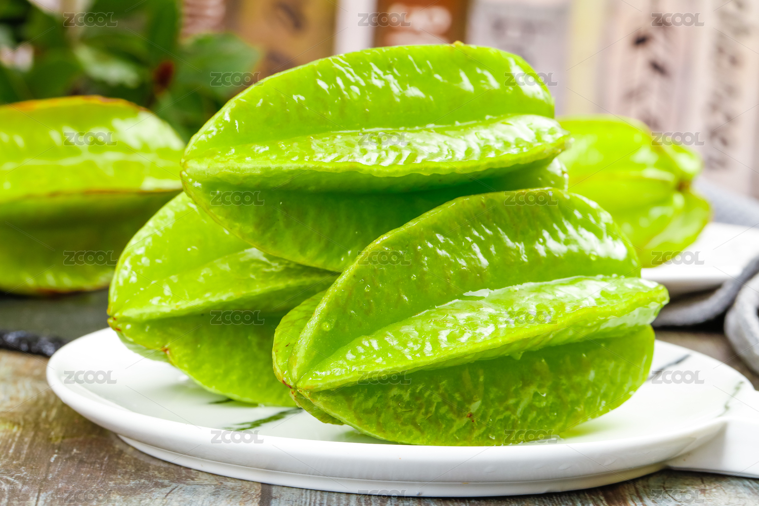 桌面上的盘子里的美味可口的杨桃