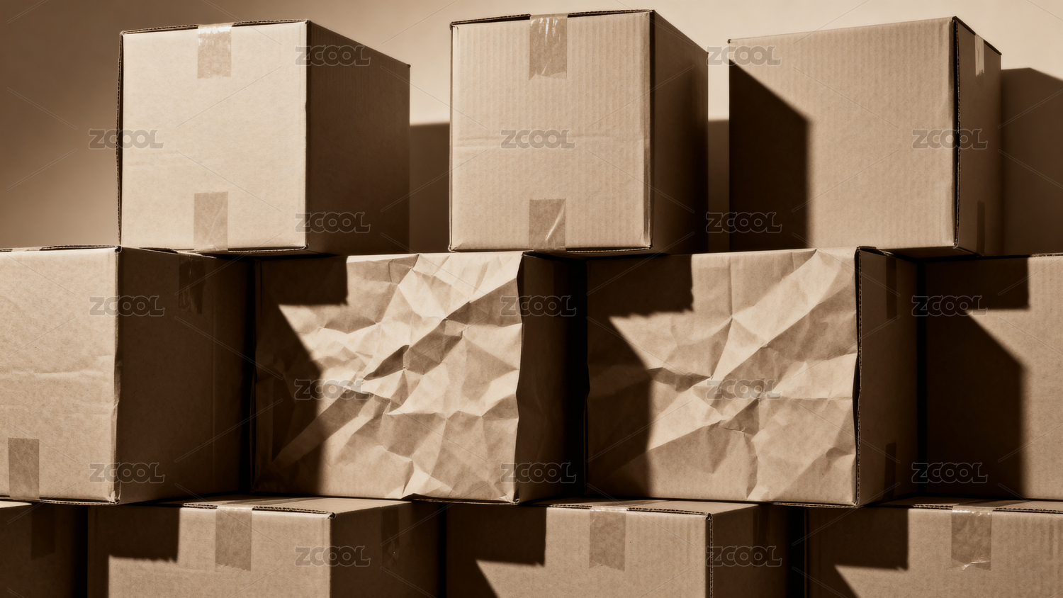 堆叠纸箱光影效果