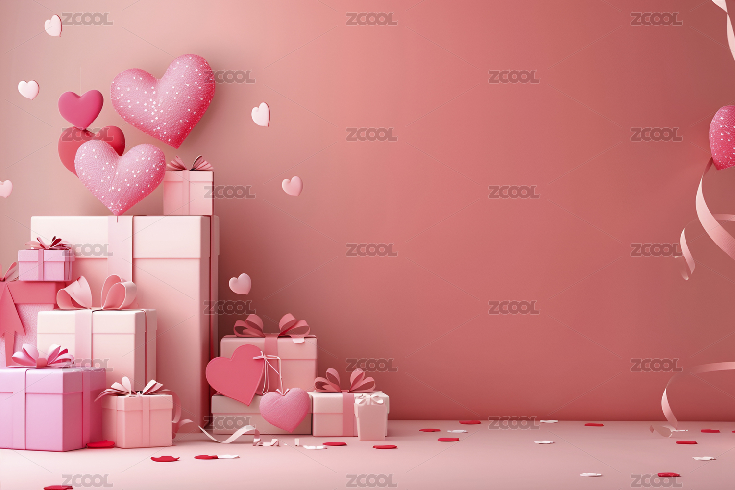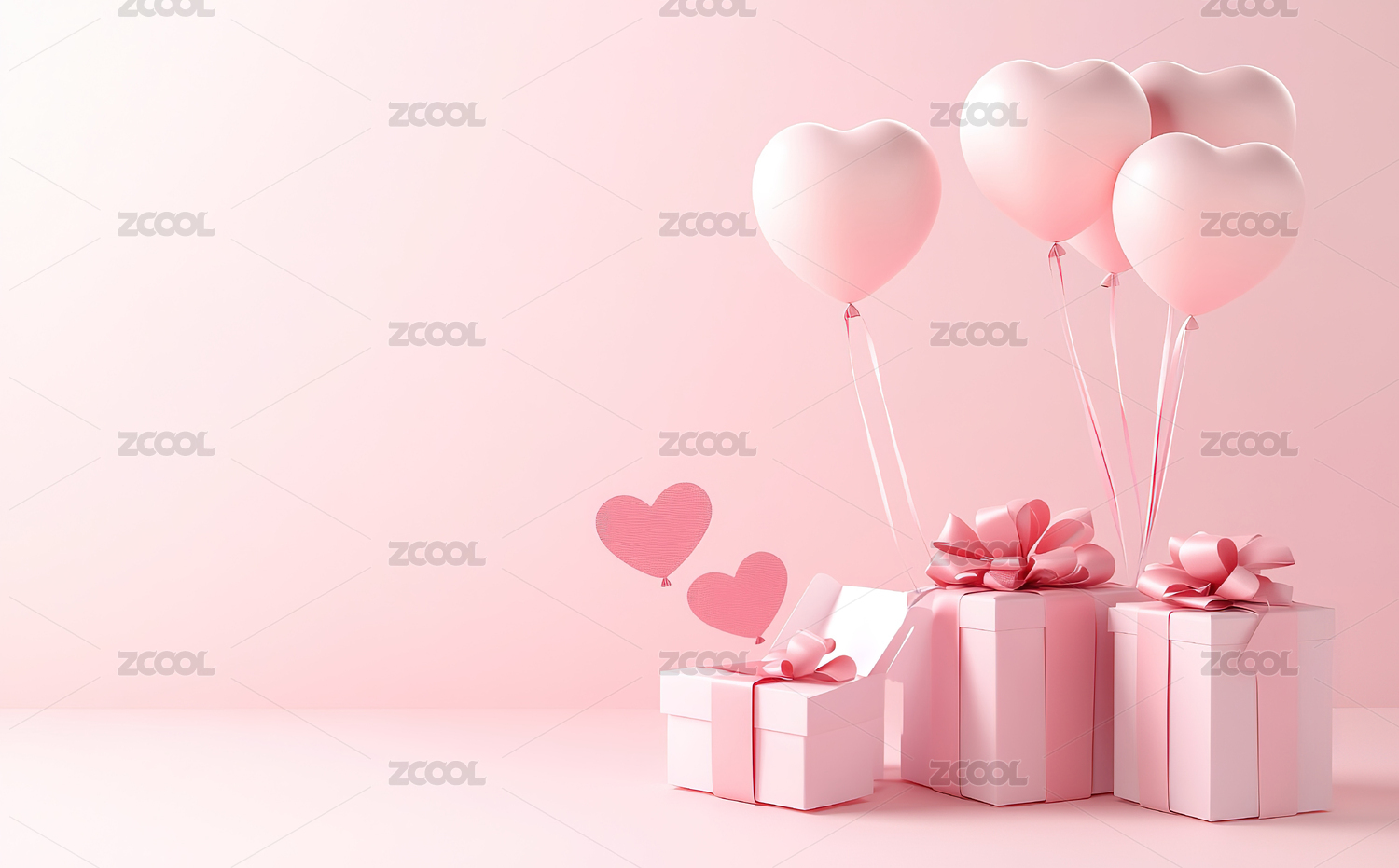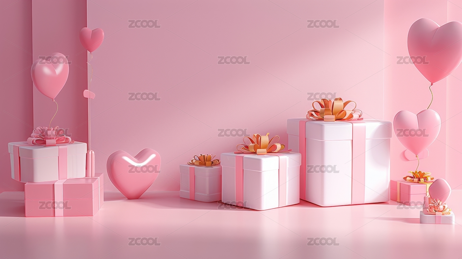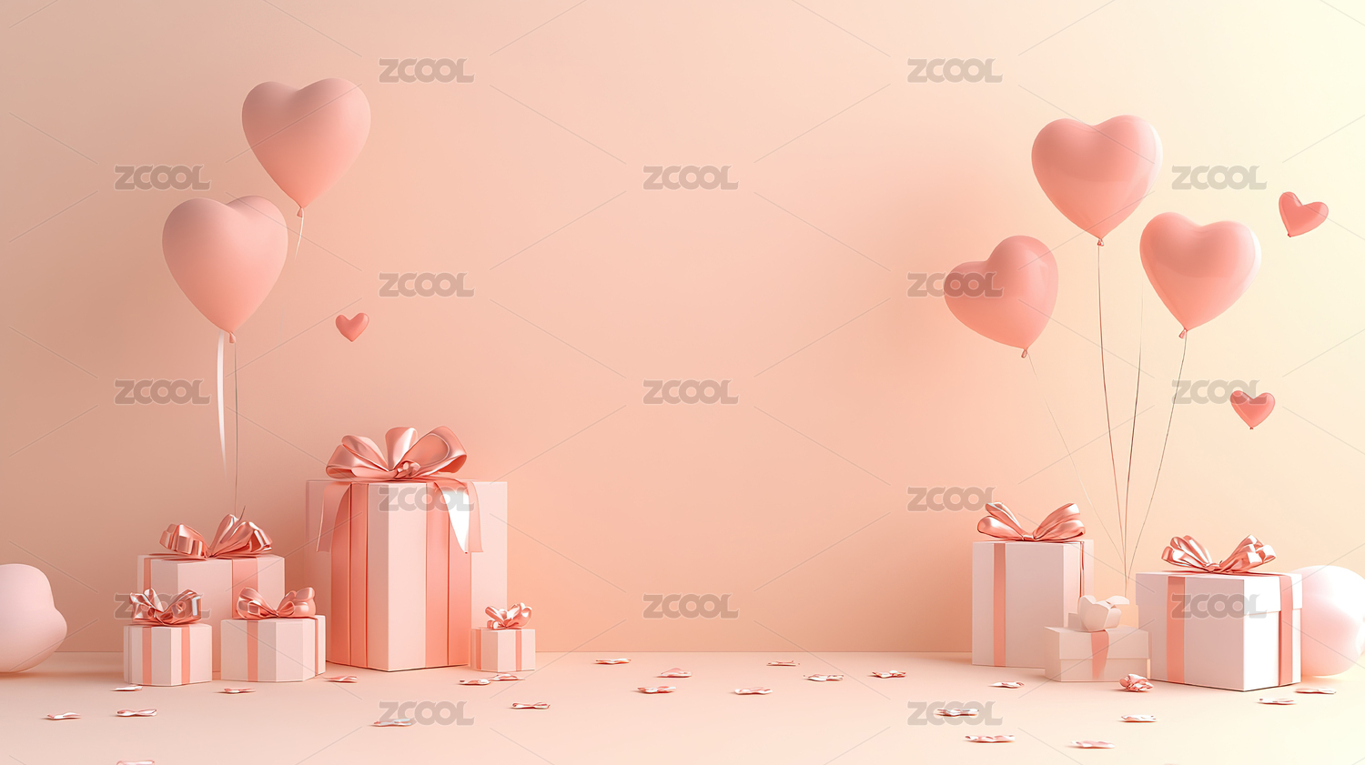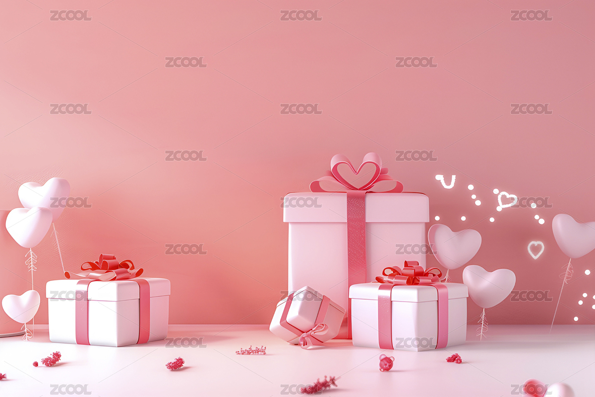 七夕情人节带气球的礼物盒展台爱情主题背景