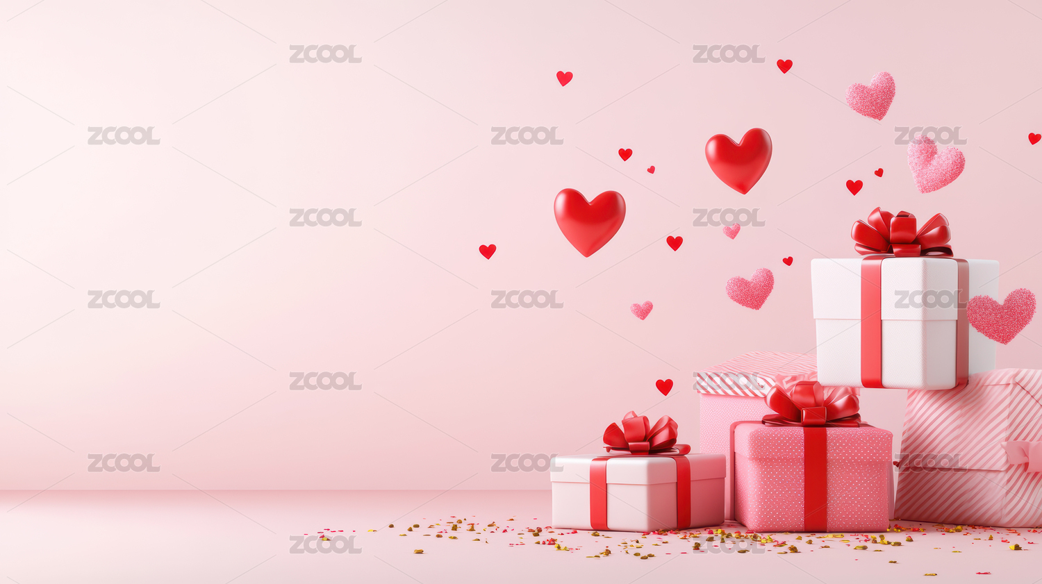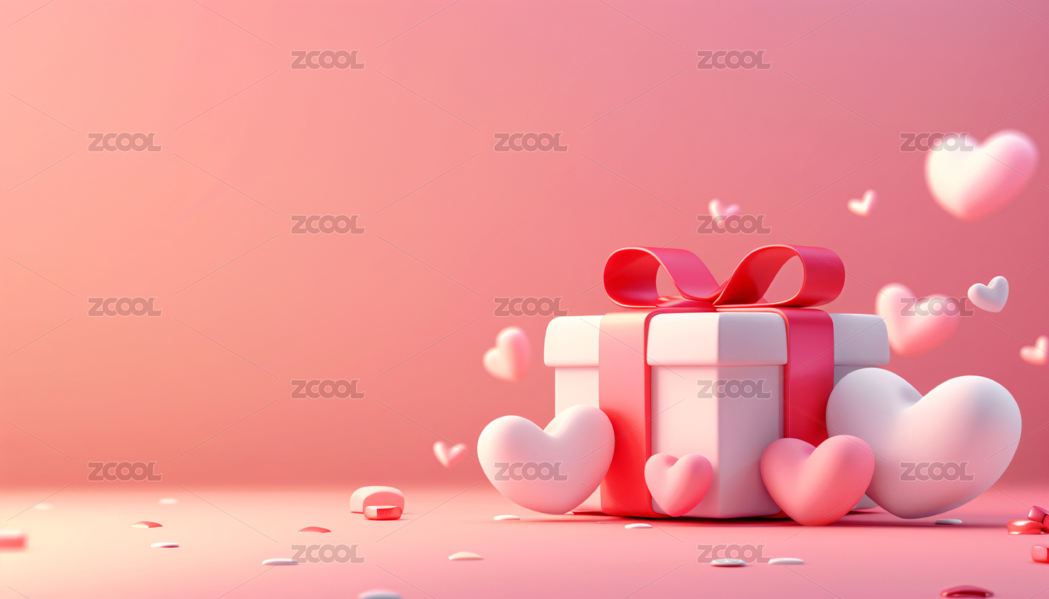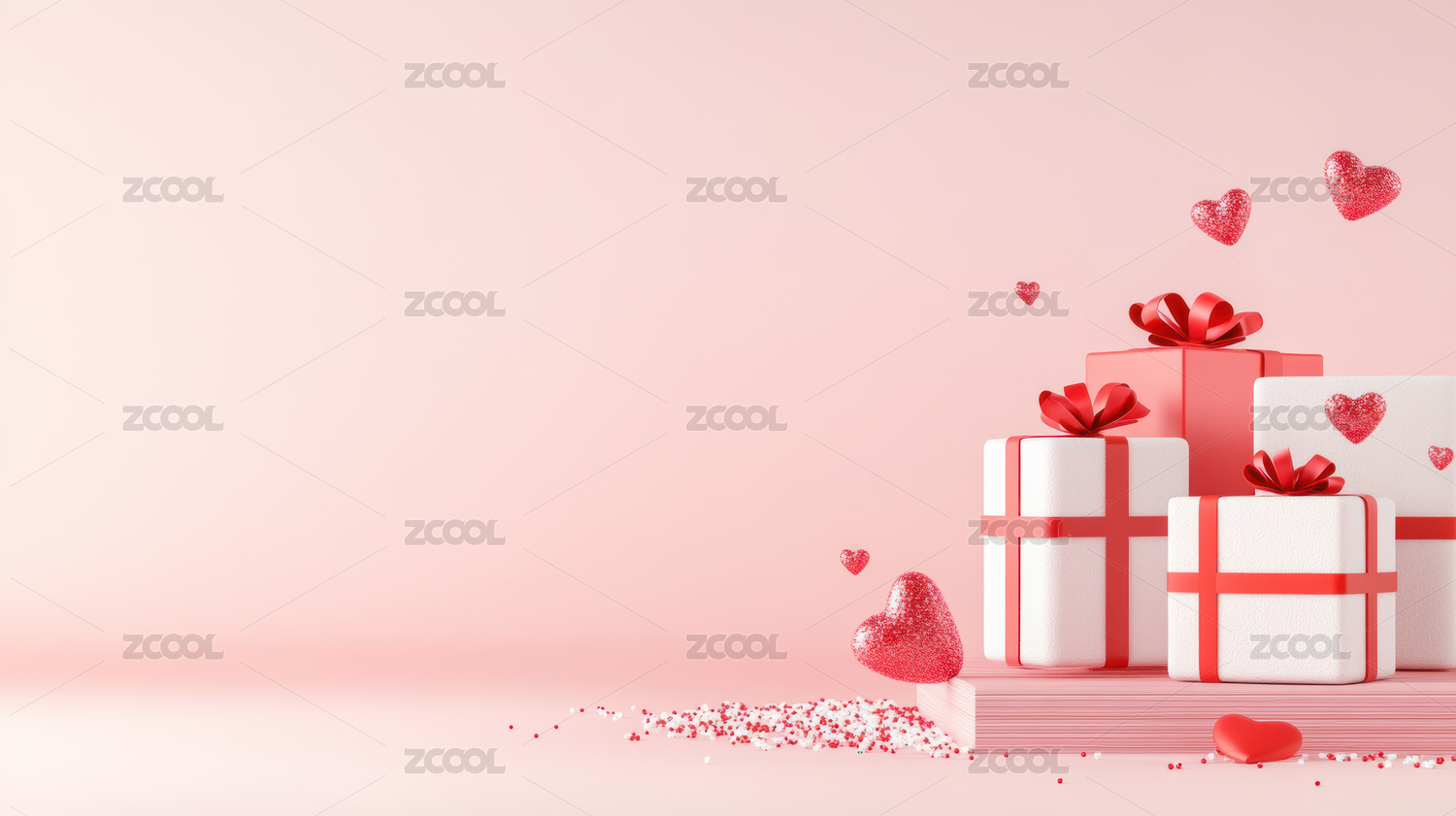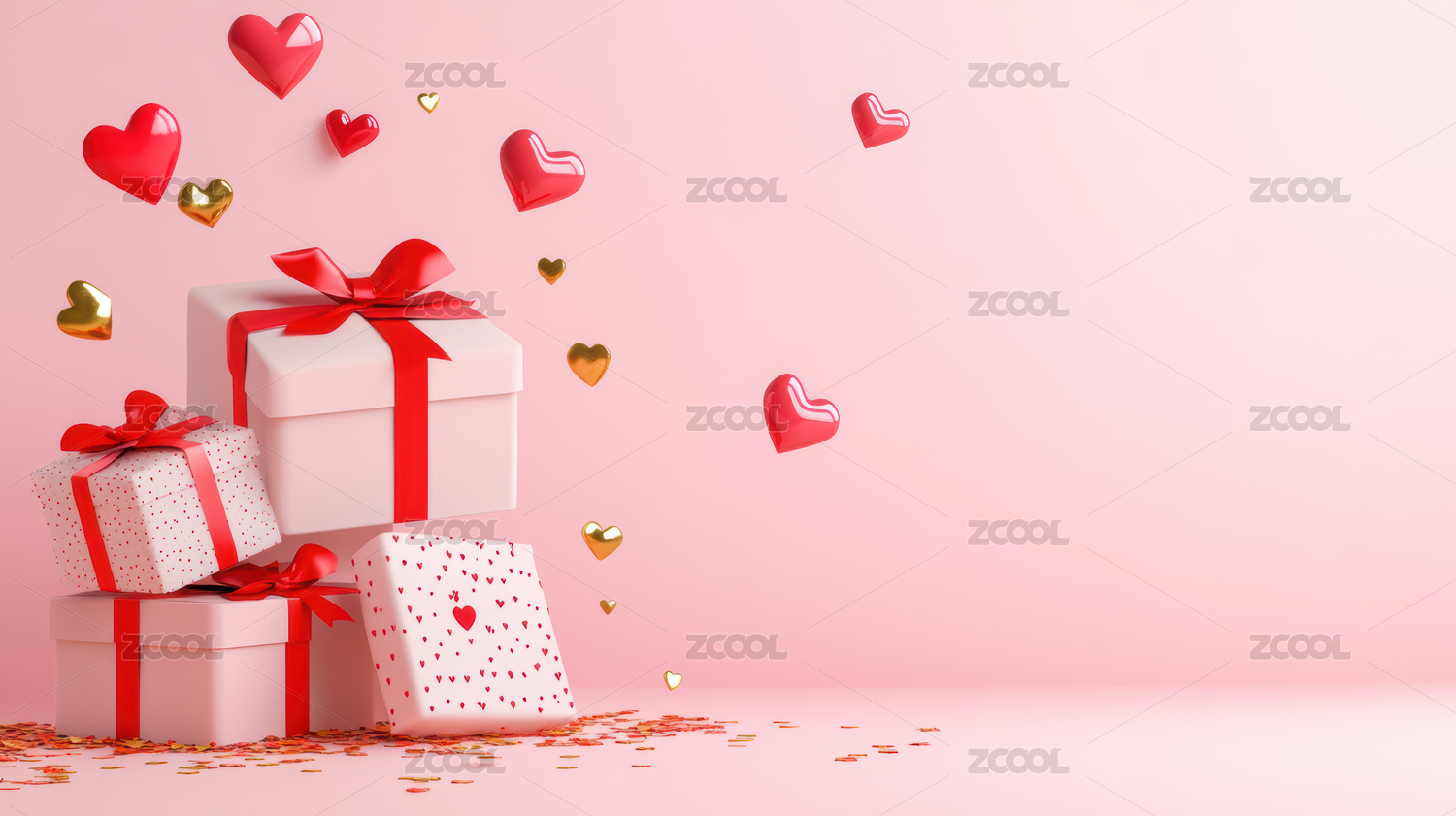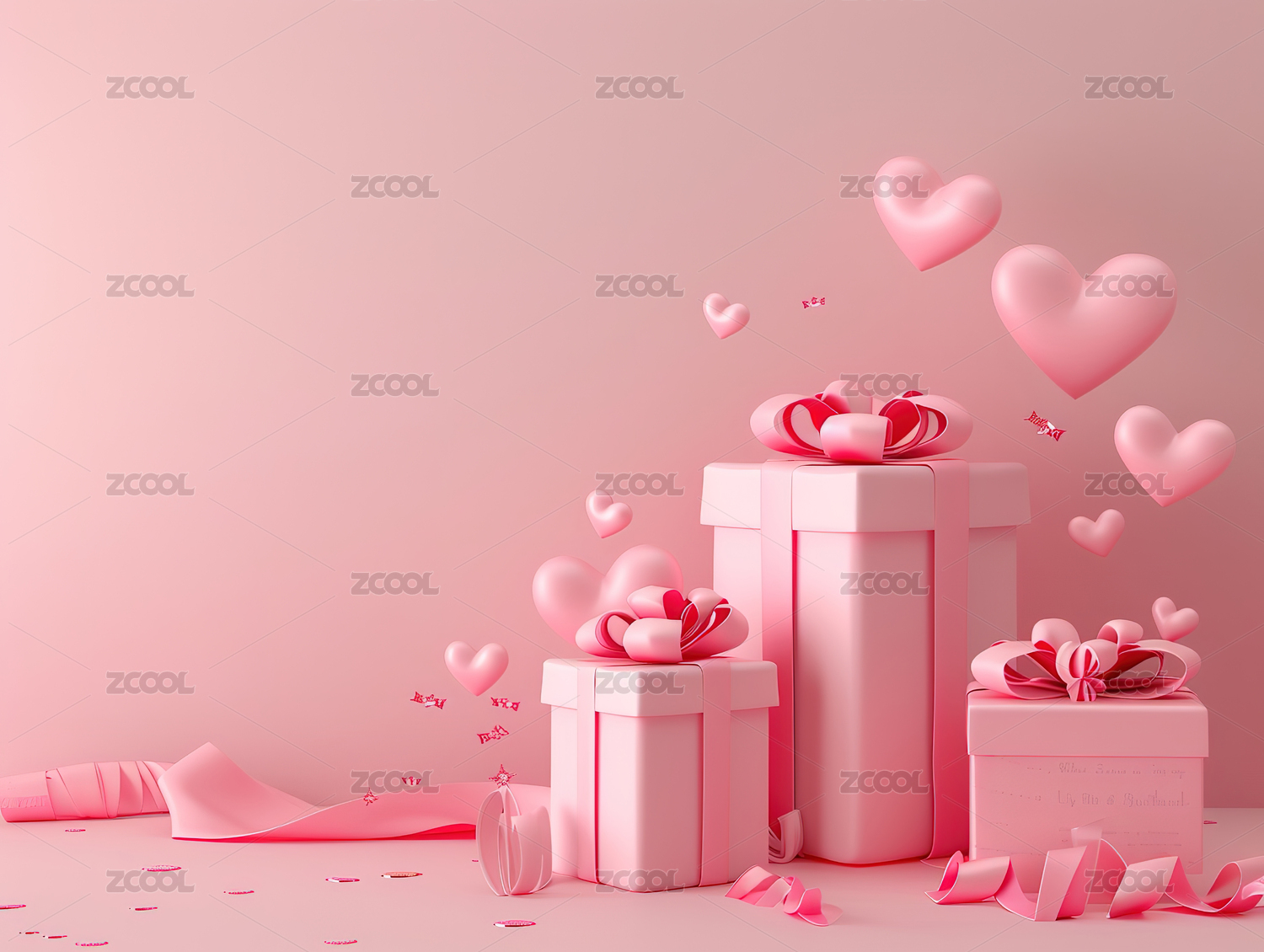 七夕情人节带气球的礼物盒展台爱情主题背景