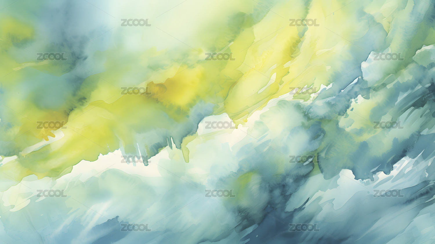 浅色抽象水彩颜料艺术底纹背景,蓝色绿色和黄色