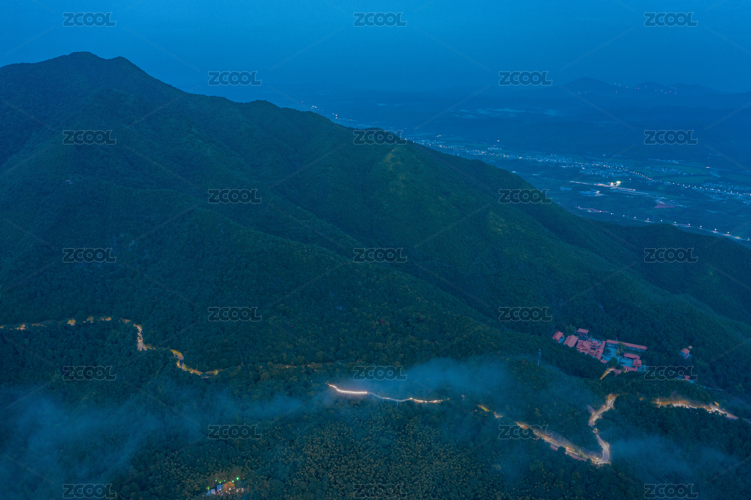 航拍户外山谷与村庄夜景