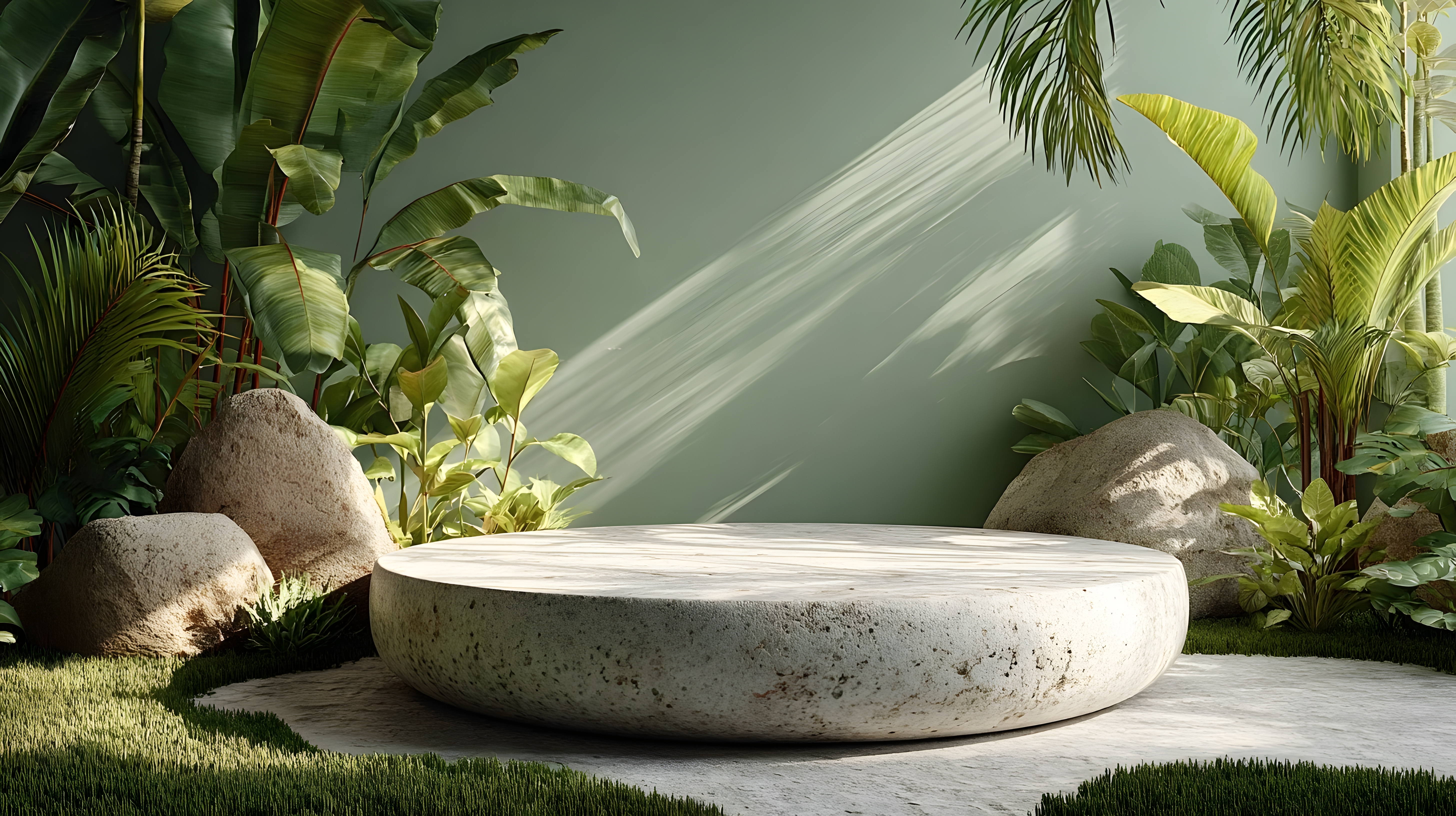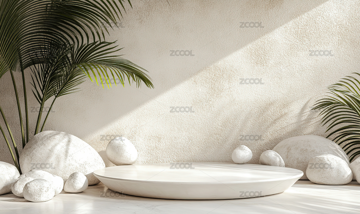 背景,现代,平台,展示,岩石,绿色植物,天然,石材,叶子,热带