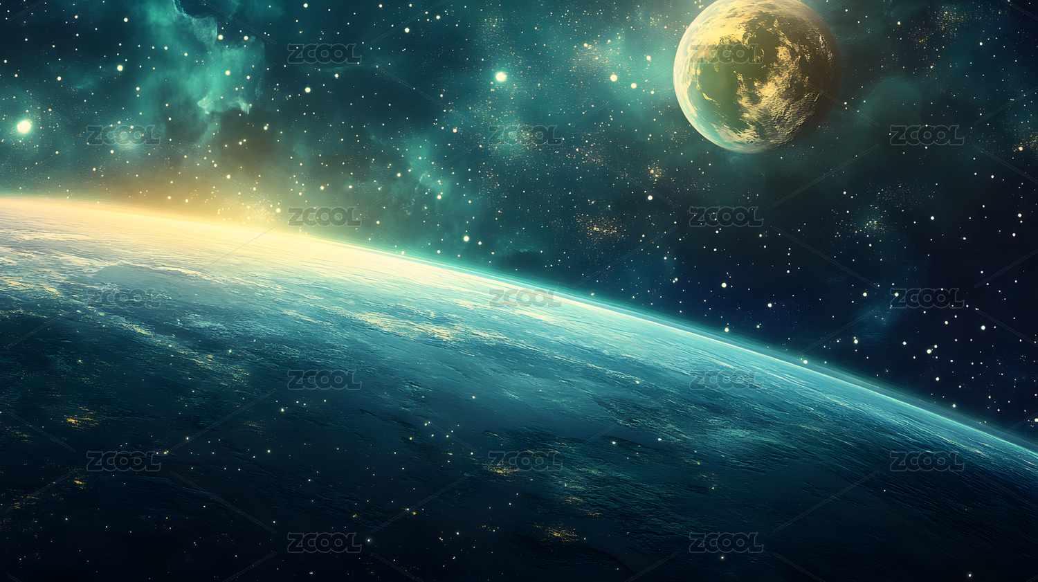 深邃宇宙星云环绕星球,璀璨城市灯光闪耀