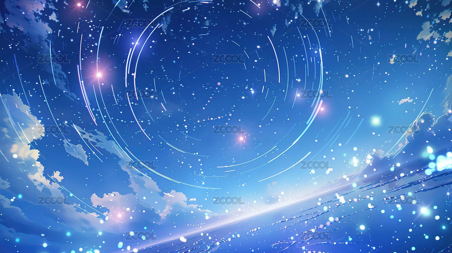 手绘唯美的抽象艺术感夜晚天空风景插画