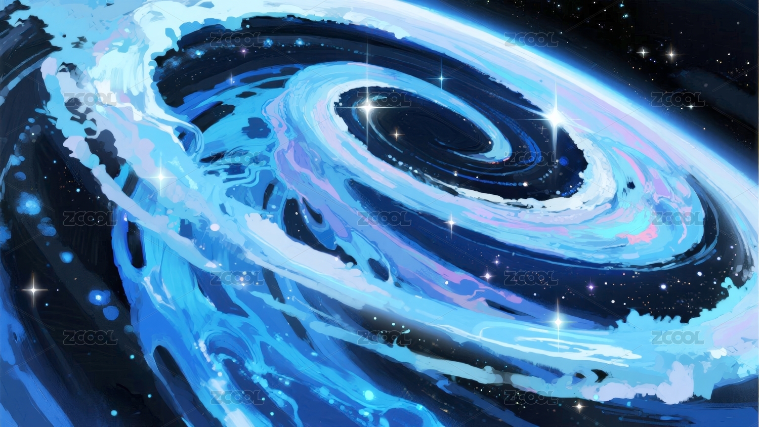 蔚蓝色的星空中有横行和黑洞的螺旋星系旋涡