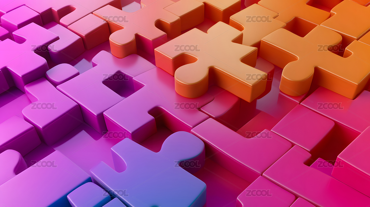 彩色拼图块紧密拼接
