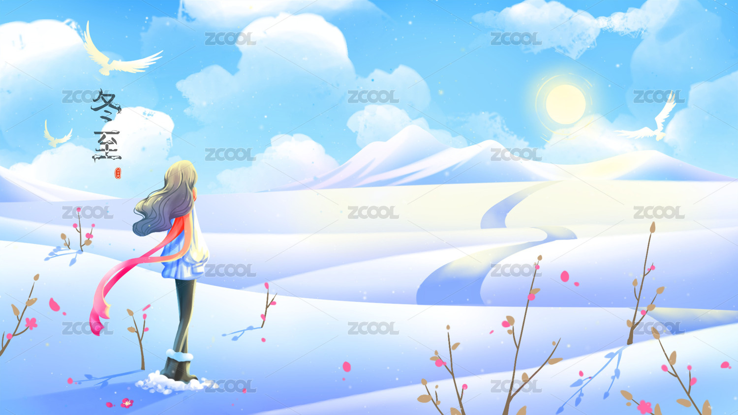 二十四节气,节日,节气,唯美插画,风景画,冬季,女孩,雪地,温暖,治愈