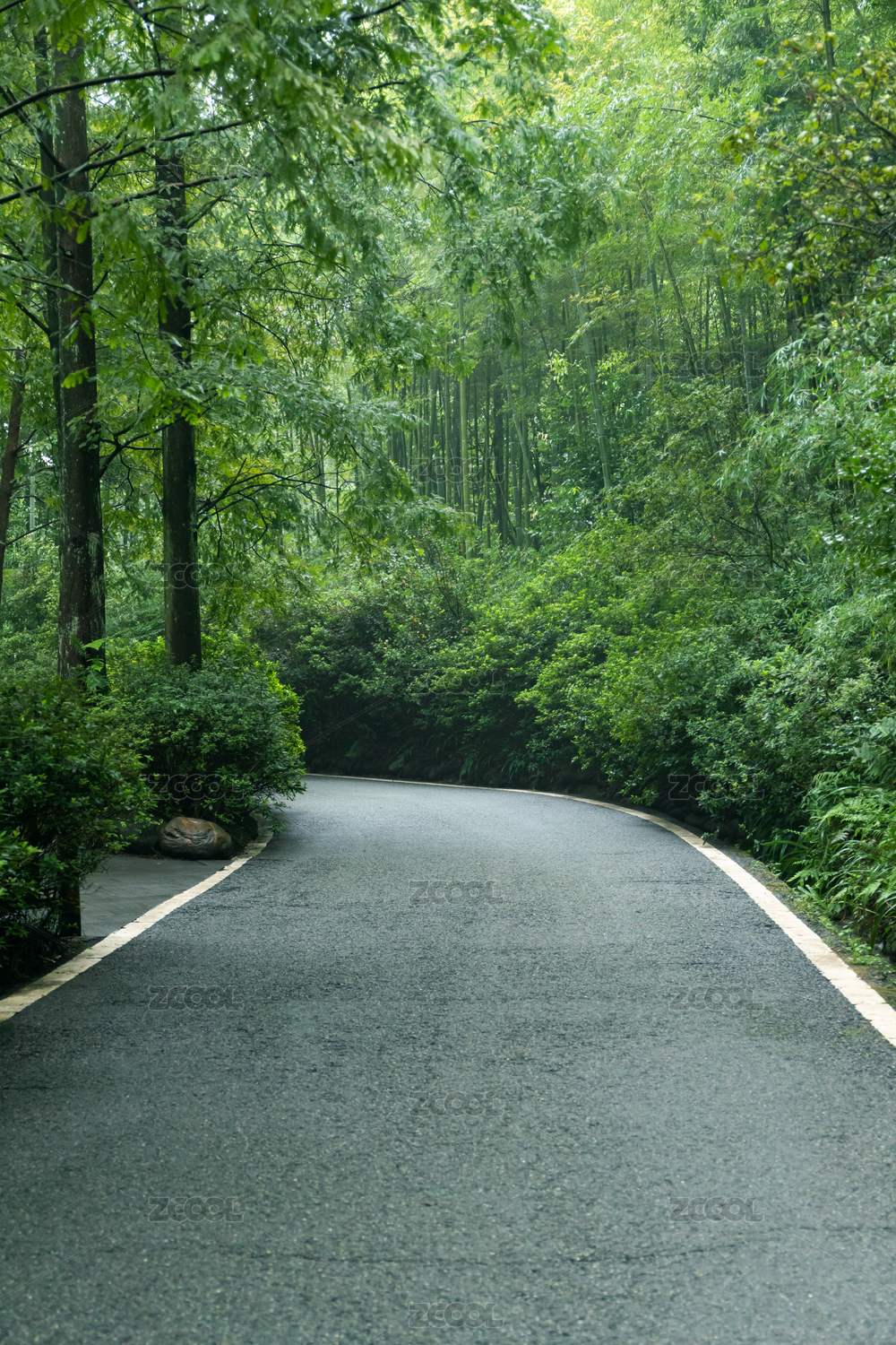 夏天雨后树林马路