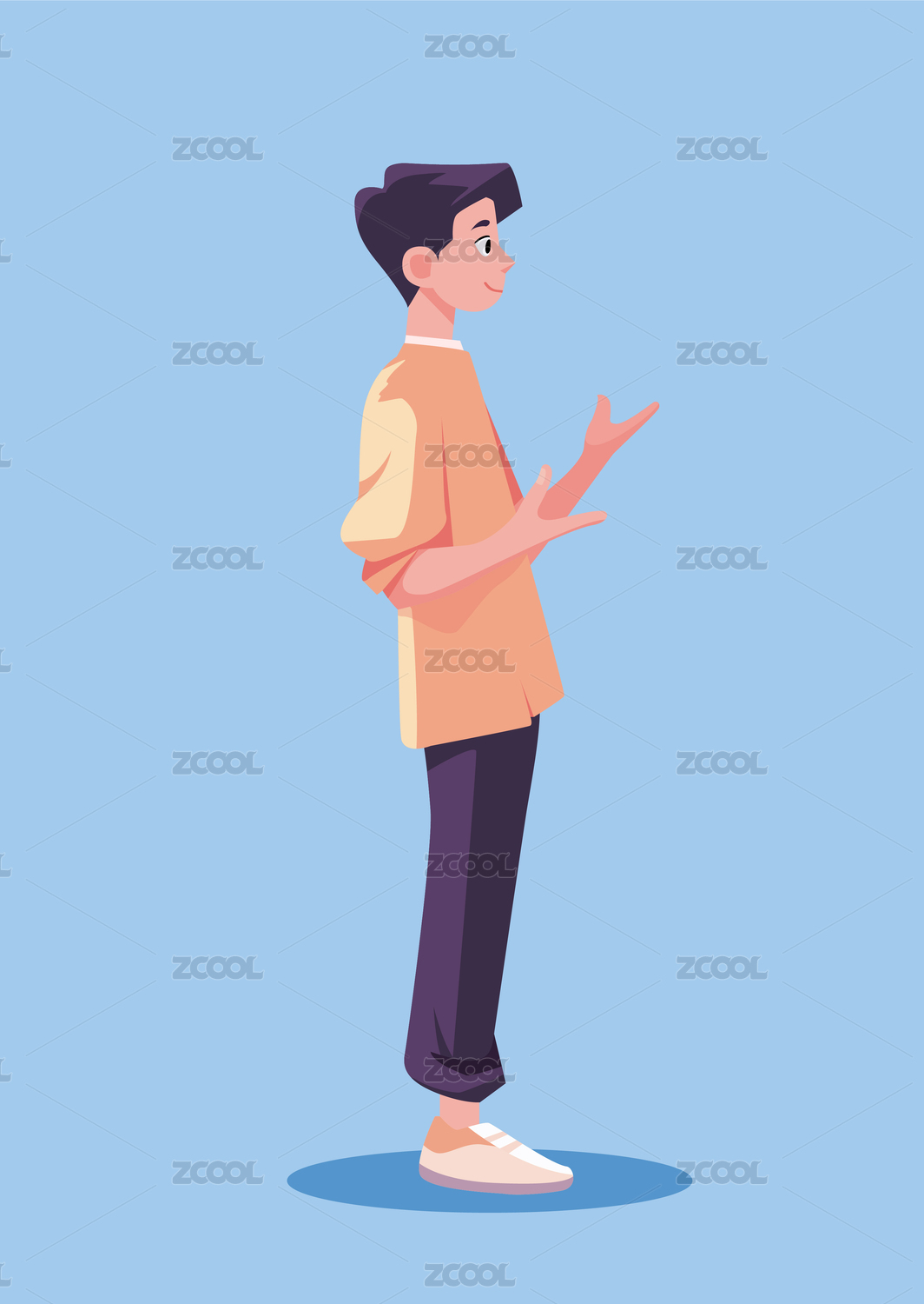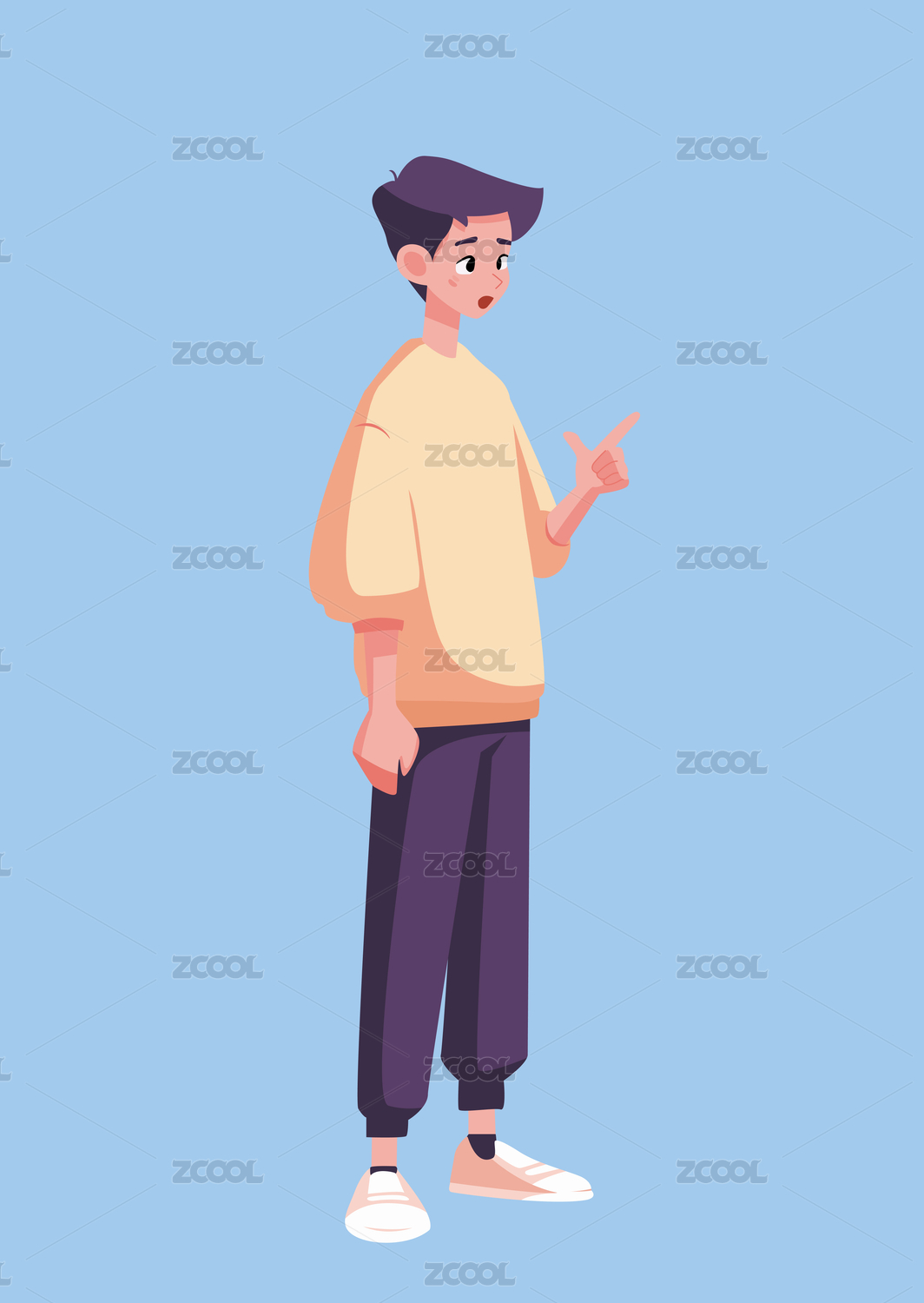 男生坐在椅子上玩手机线性手绘插画插图排版
