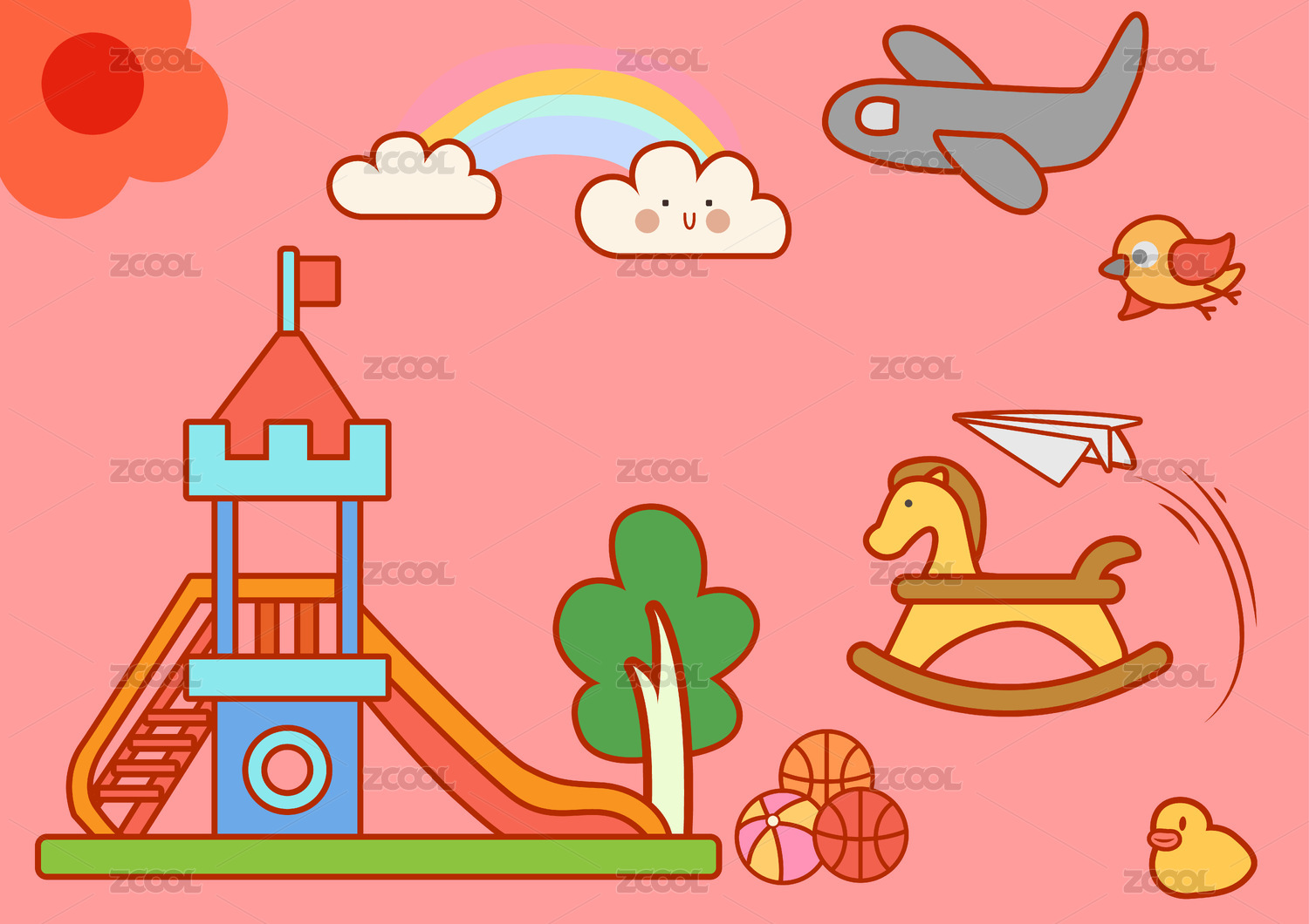 水彩风儿童玩具