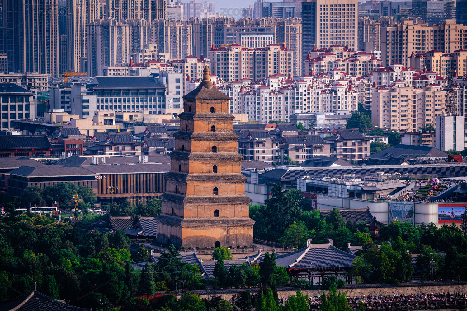 中国西安大雁塔和市区的现代建筑