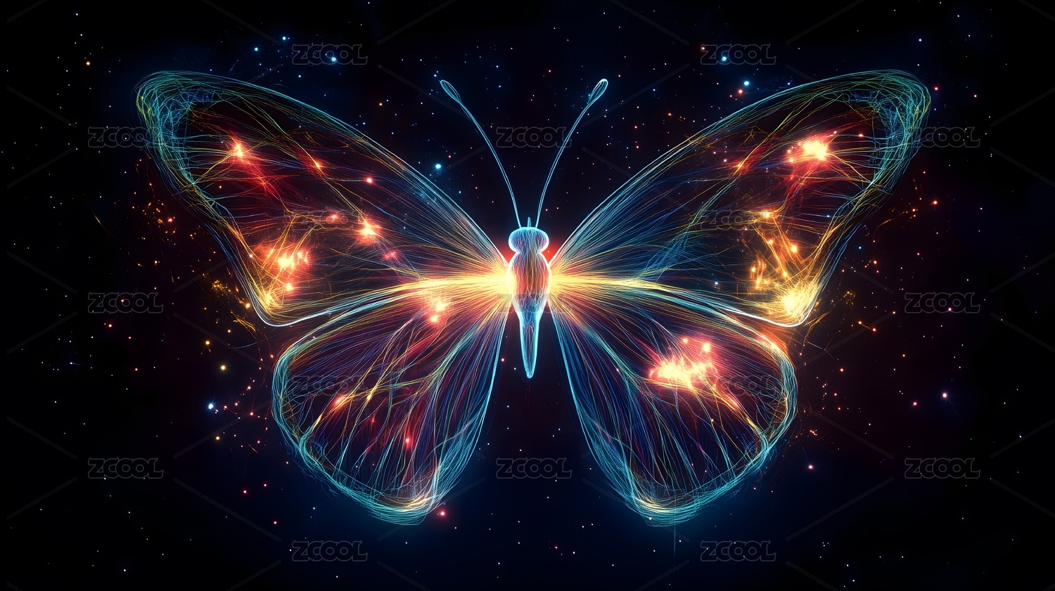 黑色背景的现代光效科技感3D彩色蝴蝶