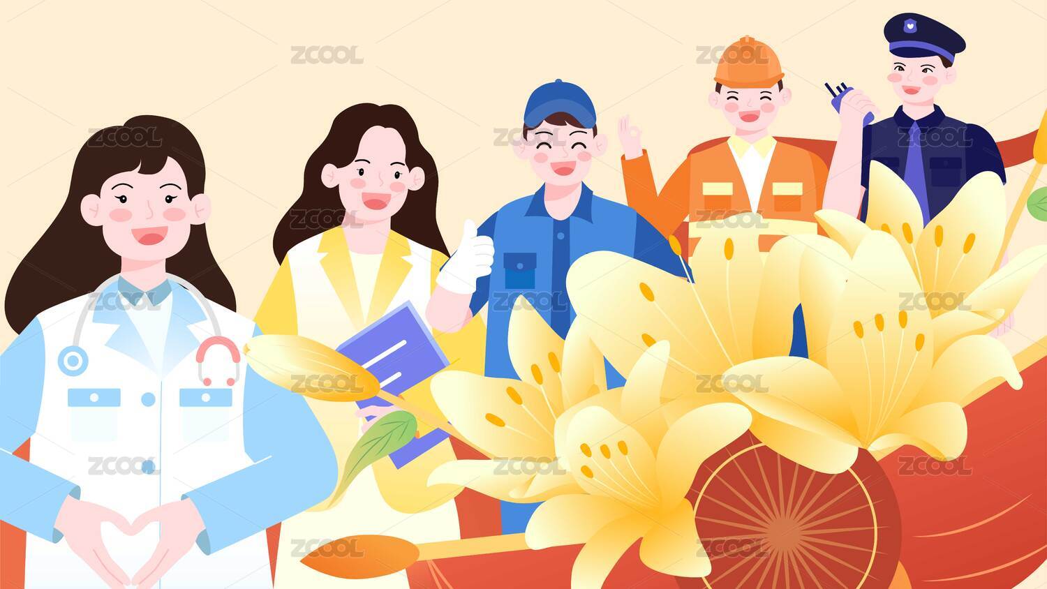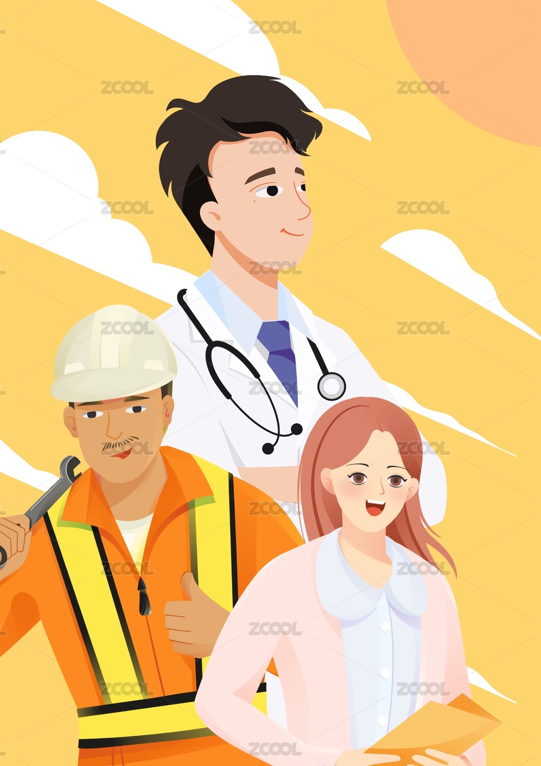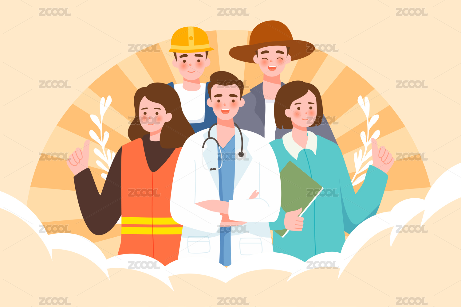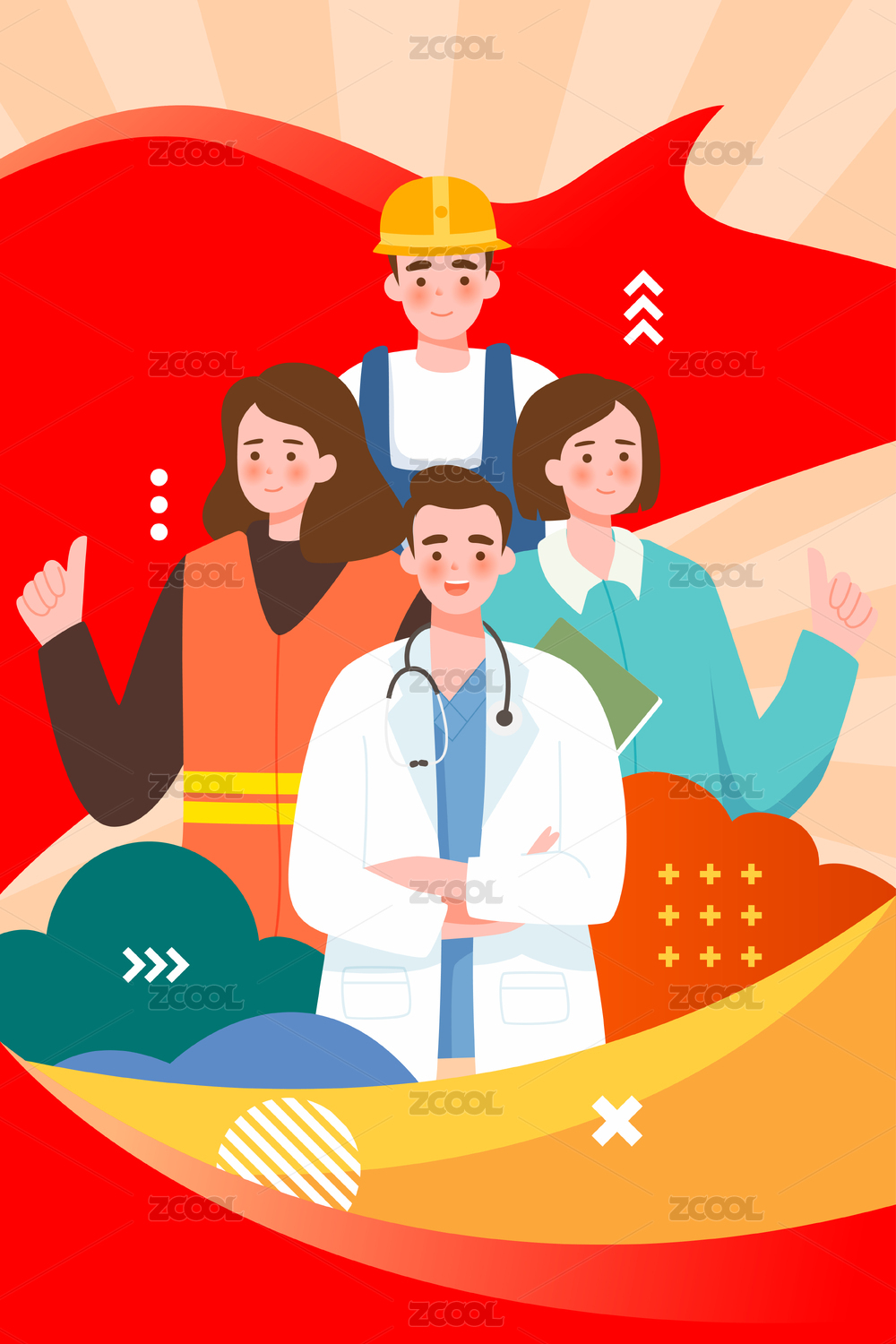 五一劳动节致敬职业劳动者插画人物劳动海报